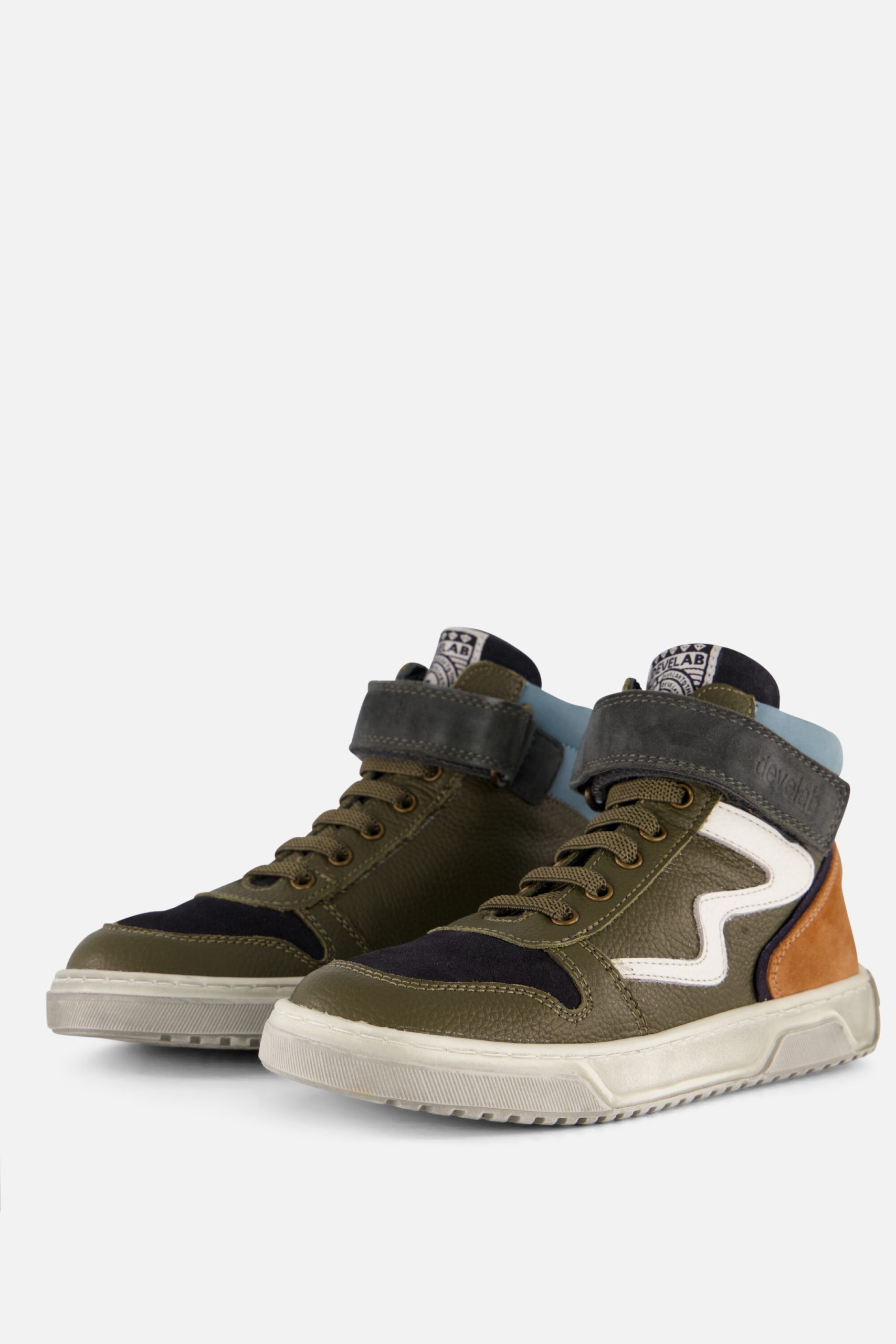 Deze Develab veterboots zijn comfortabel en stoer! Het bovenwerk is van leer, net zoals de voering en binnenzool. De sneakers hebben een uitneembaar voetbed en een vetersluiting met klittenband. De zool is gemaakt van rubber en heeft een dikte van 2 centimeter.