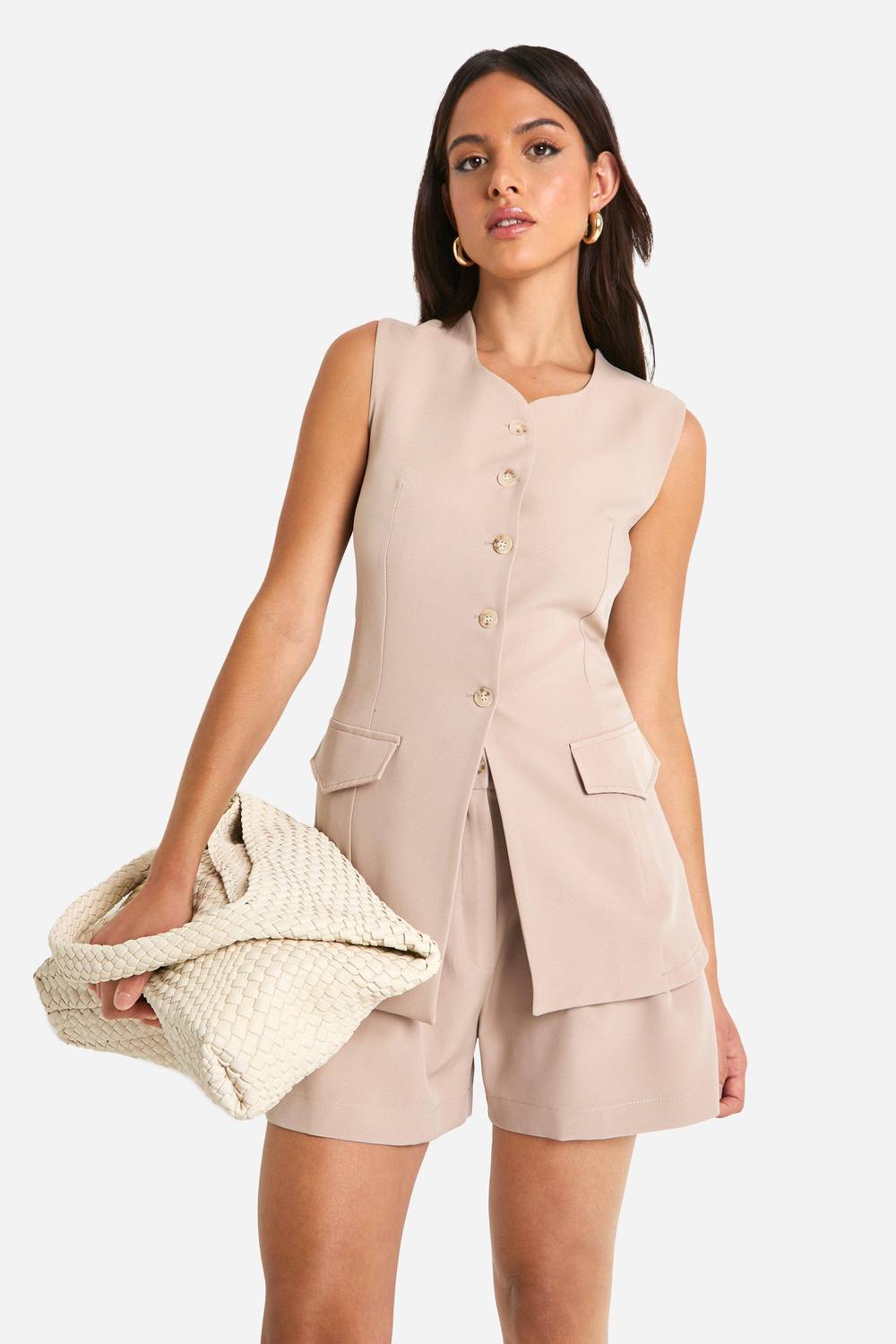 Ontworpen met hoge taille voor een flatterend silhouet Dubbele plooien voegen een verfijnde structuur toe Geweven crepe stof geeft een verzorgde uitstraling Drukknoopsluiting aan de voorkant voor een op maat gemaakte look Veelzijdige korte broeken, geschikt voor diverse informele gelegenheden Deze hoge taille korte broeken met dubbele plooien zijn een onmisbare aanvulling op je garderobe. De geweven crepe stof geeft een verfijnde touch, waardoor ze perfect zijn voor informele evenementen die een beetje elegantie vereisen. Style ze met een mouwloos overhemdje met knopen voor een gecoordineerde look, of combineer met een simpel T-shirt voor een meer ontspannen sfeer. Het veelzijdige ontwerp maakt een gemakkelijke overgang van dag naar nacht mogelijk – ruil je sneakers in voor bandelige sandalen en voeg opvallende oorbellen toe voor een avondborrel. Deze korte broeken zijn ideaal voor familiebijeenkomsten, brunchdates of casual vrijdag op kantoor. De hoge taille en geplooide voorkant creeren een flatterend silhouet dat zowel comfortabel als chic is. Omarm de trends van het seizoen door ze te combineren met een cropped cardigan en chunky sandalen voor een moeiteloos stijlvolle ensemble. boohoo Dames Double Plooi Hoge Taille Op Maat Gemaakte Korte Broek | Mocha | Maat: 34