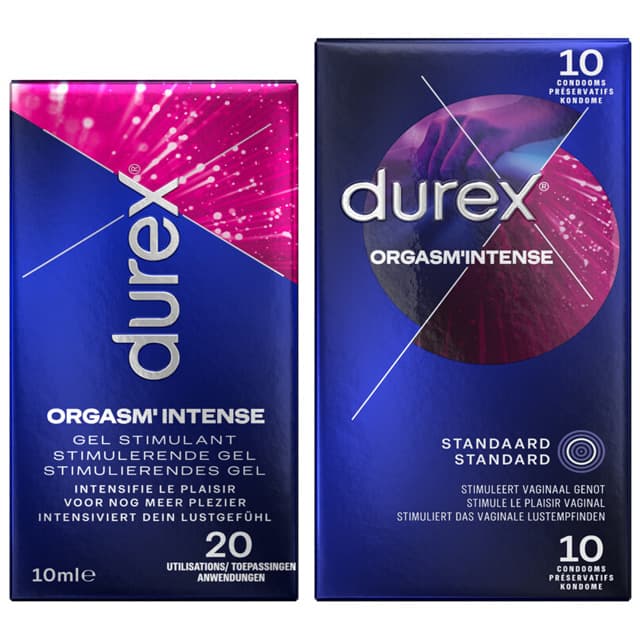 Geef je intieme momenten een krachtige boost en ontdek een geheel nieuwe dimensie van plezier met Durex Orgasm'Intense Condooms. In tegenstelling tot andere stimulerende condooms op de markt, bieden deze condooms een complete en ultieme stimulatie van al je zintuigen door de combinatie van patronen, aroma's en smaken. Deze condooms zijn gemaakt van natuurlijk rubberlatex en zijn voorzien van een opwindende gel, verhoogde stippen en ribbels op strategische plaatsen. De perfecte combinatie van deze elementen zorgt ervoor dat de gevoelssensaties van je partner worden geactiveerd, waardoor ze snel naar de rand van plezier worden gebracht en het meest intense orgasme kunnen ervaren. De ribbels en stippen op deze condooms zijn opvallender in vergelijking met andere vergelijkbare producten. Ze strelen en prikkelen de vaginawand, de clitoris en de G-spot, waardoor een snellere en krachtigere reactie wordt opgewekt. Tegelijkertijd geeft de verfrissende en verwarmende muntsmaak-gel een tintelend gevoel, waardoor de bloedcirculatie wordt gestimuleerd en het genot nog intenser wordt. Voor extra glijmiddelcomfort kun je Durex Orgasm'Intense Condooms gebruiken in combinatie met een muntsmaak-glijmiddel. Deze condooms zijn compatibel met de meeste glijmiddelen op waterbasis en siliconen. Met een nominale breedte van 56 mm en een comfortabele pasvorm zijn Durex Intense Condooms geschikt voor de meeste mannen. Ze bieden voldoende bewegingsvrijheid en zijn comfortabel om te dragen. Alle Durex condooms worden elektronisch getest op veiligheid en voldoen aan of overtreffen de Europese normen, zodat je met vertrouwen kunt genieten van veilige en plezierige momenten.