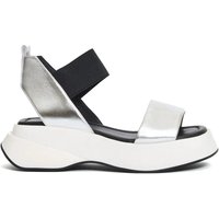 Opvallende zilveren leren sandalen ontworpen voor de moderne vrouw.- Metallic bovenwerk- 6 cm platformzool- Brede elastische band voor een veilige pasvorm- Stylish veelzijdigheid voor casual uitjesDe genoemde maten zijn Italiaanse maten. Voor de beste pasvorm verwijzen wij u naar onze maattabel.