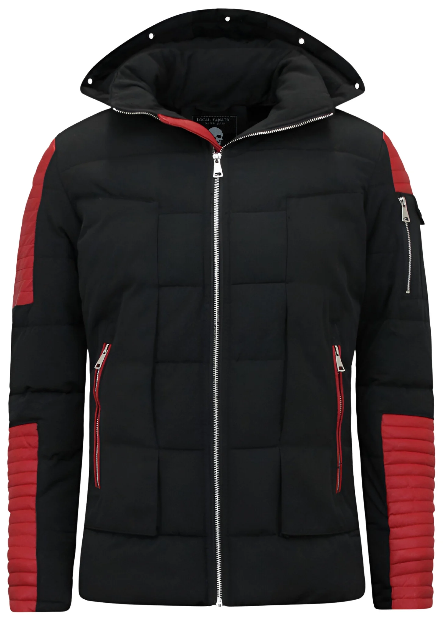 Winterjas Heren Halflang – Productinformatie: Winterjas Heren Halflang Heeft een stijlvolle zwarte kleur De jas heeft rode kunstleren stukken Comfortabel en warm model, perfect voor de winter Halflang model met een slim fit pasvorm Het materiaal bestaat uit 65% katoen en 35% polyester De voering bestaat uit 100% polyester Heeft een rits met drukknopen als sluiting Het model heeft twee jaszakken en één binnenzak De capuchon is niet afritsbaar Voorgedrukte knopen / rits aan capuchon.Zelf uit te breiden met nep bontkraag (wordt meegeleverd) Breng hem naar de stomerij voor een maximale levensduur Verkrijgbaar in de maten S – M – L – XL
