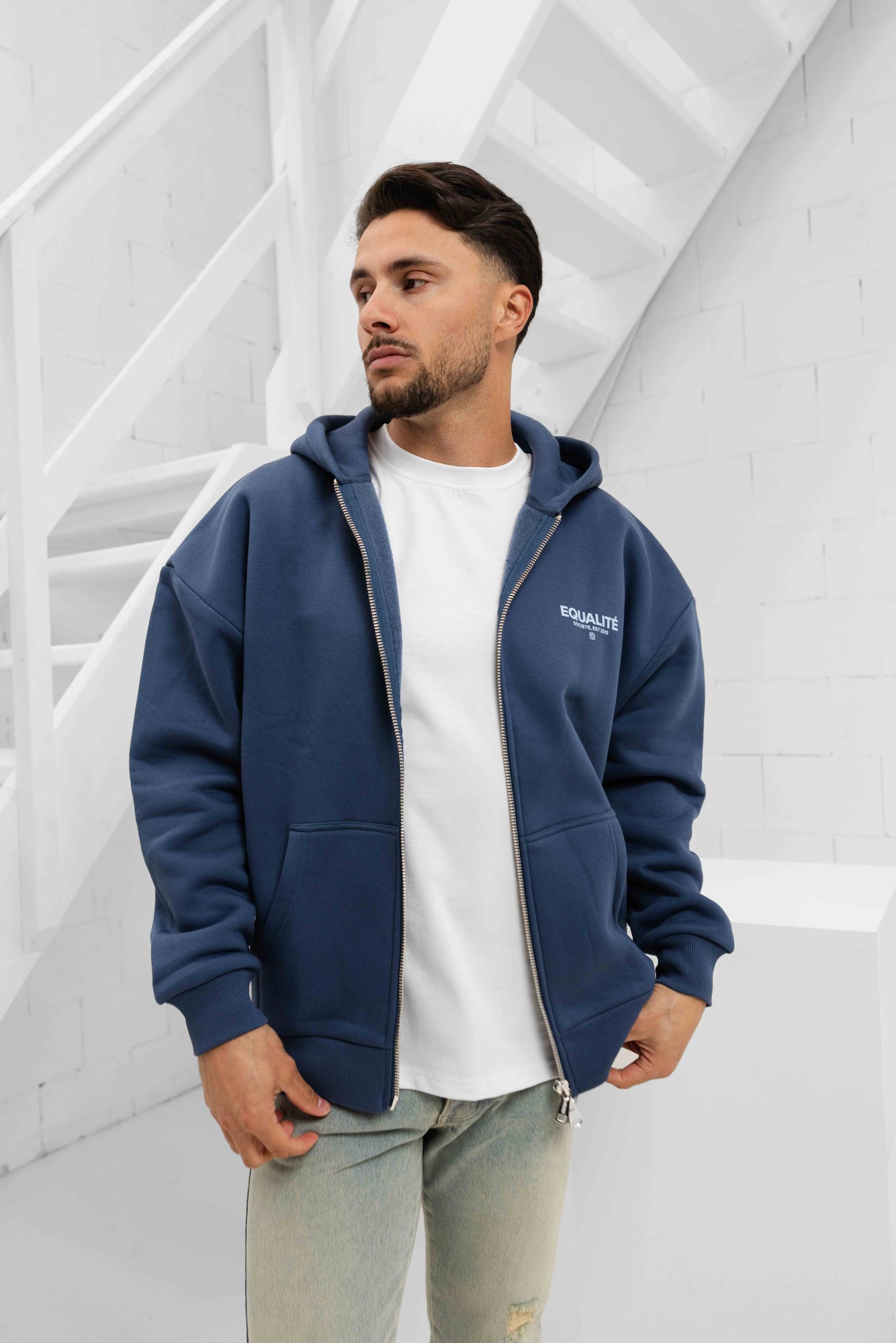 Equalité Societe Oversized Full Zip Hoodie Heren Donkerblauw
