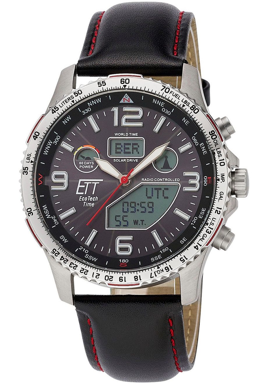 Home » Accessoires » Horloges » ETT Radiografische chronograaf Professional World Timer Polshorloge, herenhorloge, solar, titanium, datum, stopwatchfunctie