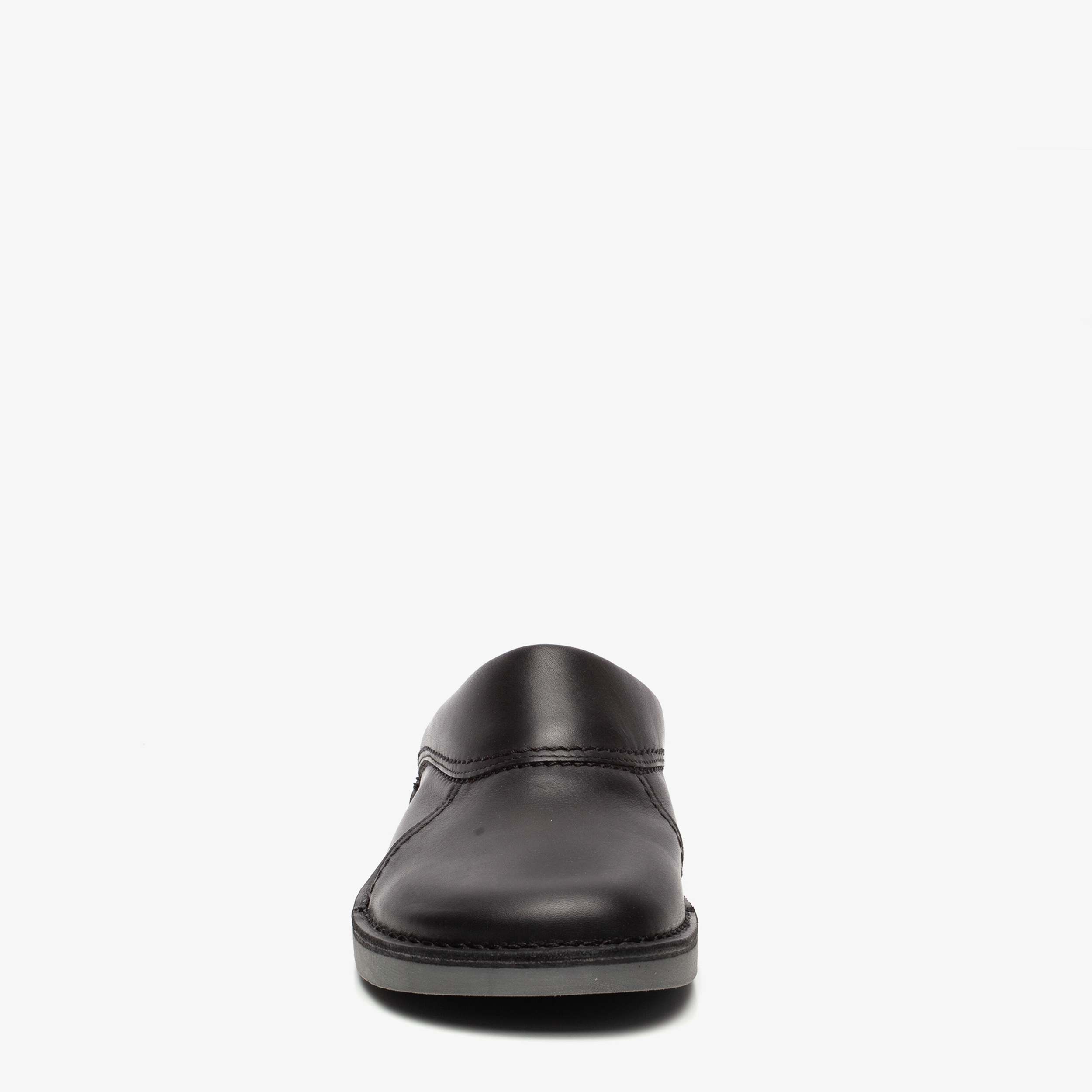Zwarte muilen voor heren van Eve & Adam. Gemaakt van leer, een binnenwerk van leer en een stevige profielzool. De muilen hebben een elastiche instap en comfortabel voetbed. De buitenzool biedt grip en demping.