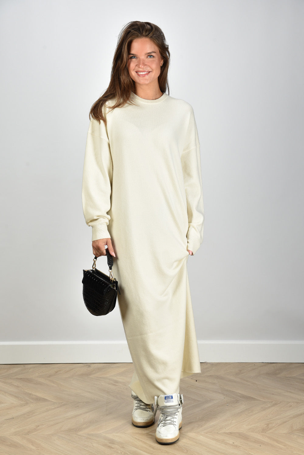 De Extreme Cashmere jurk Weird 106 in het cream is een stijlvolle en comfortabele jurk gemaakt van hoogwaardige materialen. De jurk heeft een rechte pasvorm en een ronde halslijn. De mouwen zijn lang en hebben een iets oversized fit, wat zorgt voor een nonchalante uitstraling. De kleur cream geeft de jurk een opvallende en levendige uitstraling, waardoor het een perfecte keuze is voor degenen die van kleur houden en hun garderobe willen opvrolijken. Overall is de Extreme Cashmere jurk Weird 106 een prachtige, veelzijdige jurk die geschikt is voor verschillende gelegenheden en die gegarandeerd veel complimenten zal opleveren. Ons model is 1,73 m, heeft maat M, en draagt maat one-size.Let op! De riem is niet inbegrepen. Deze kun je los bestellen.