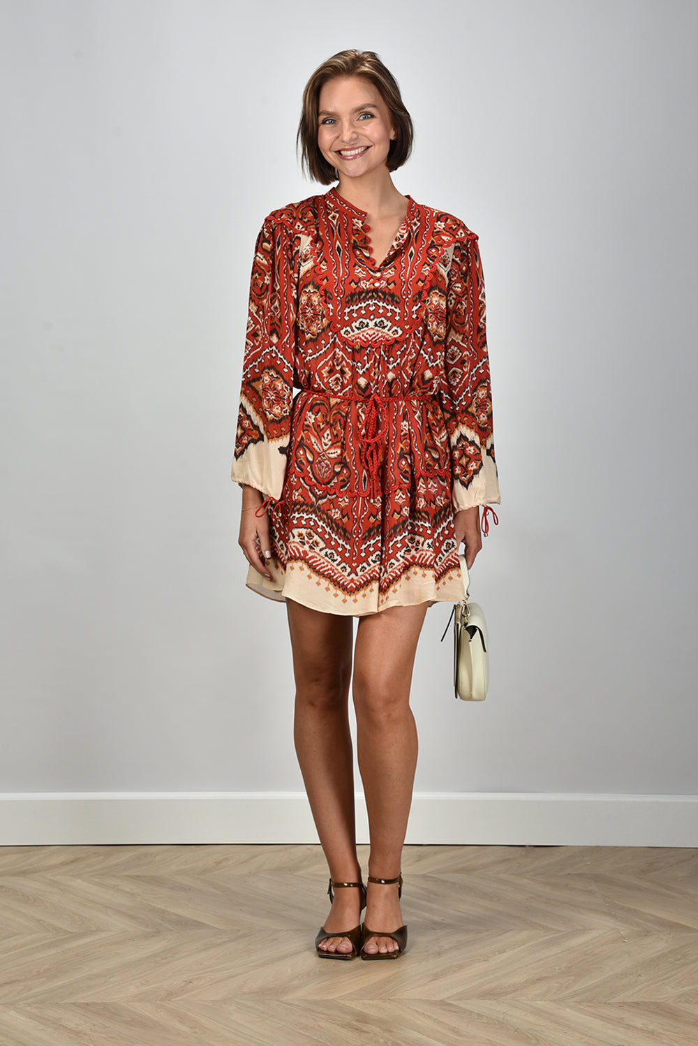 Koop Farm Rio jurk 340019 ainika pineapple ikat cream bij Marjon Snieders voor 158.00