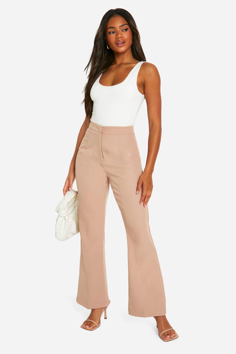 Uitlopende pijp voor een retro-geinspireerd silhouet Hoge taille om de taille te accentueren Geweven crepestof voor een licht gevoel Veelzijdige neutrale tint voor eenvoudige styling Op de grond aflopende lengte voor een dramatische uitstraling Omhels de heropleving van de jaren 70 mode met deze opvallende uitlopende broeken van Boohoo. Perfect voor de modebewuste vrouw die een statement wil maken, bieden deze broeken een mix van vintage charme en eigentijdse stijl. Het hoge tailleontwerp verlengt je silhouet, terwijl de uitlopende pijp een vleugje drama toevoegt aan je outfit. Combineer met een aansluitend bodysuit en strapschoenen voor een avondje uit, of draag ze casual met een cropped t-shirt en sneakers voor een chique look overdag. De lichte crepestof zorgt voor comfort gedurende de hele dag, waardoor deze broeken ideaal zijn voor alles, van informele uitjes tot familiebijeenkomsten. Veelzijdig en trendy, deze flares zijn een onmisbare aanwinst voor de garderobe van elke modefan, met eindeloze stylingmogelijkheden voor het komende seizoen. boohoo Dames Fit & Flare Getailleerde Broek – 30 Inch Binnenbeen | Camel | Maat: 42