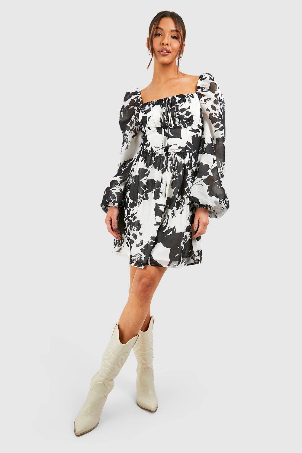 Floraal Gerunste Boezem Mini Melkmeisjejurk