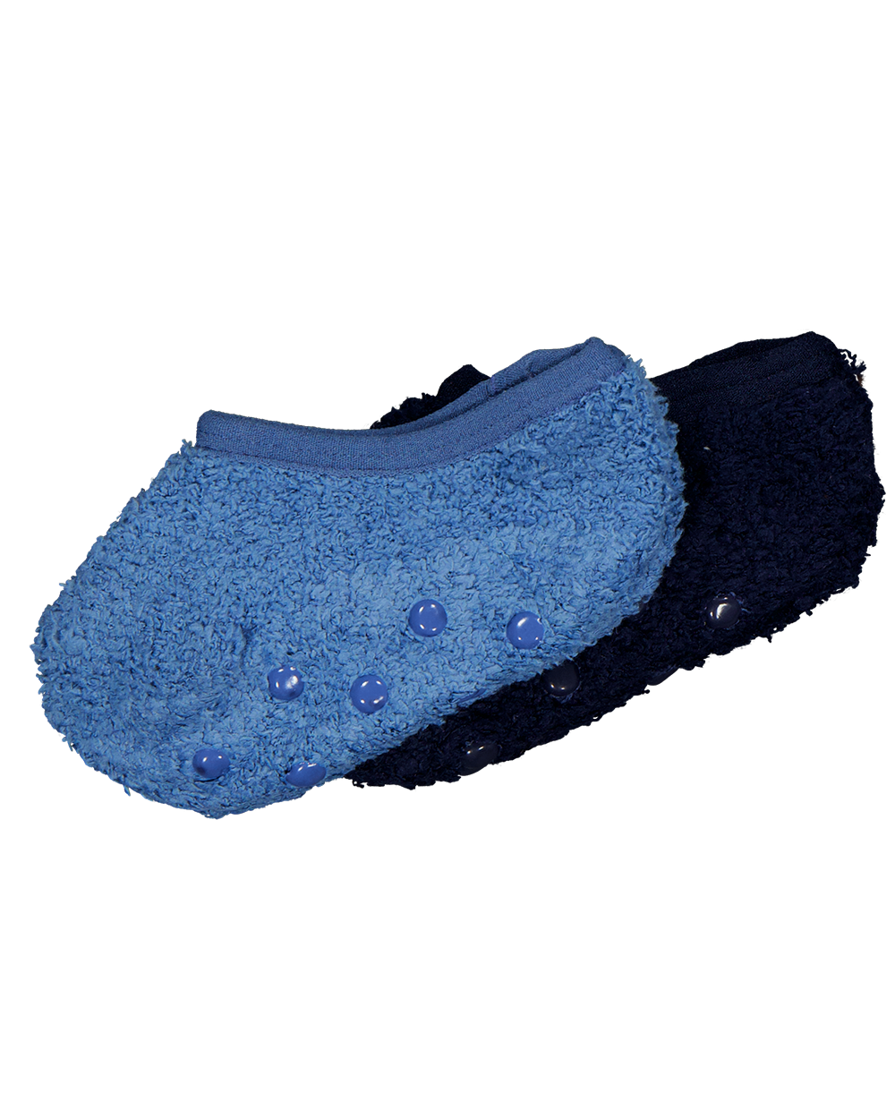 Deze blauwe footies zijn gemaakt van 99% polyester en 1% elastaan. Door het zachte materiaal zitten ze comfortabel. Dankzij de antislip aan de onderkant heb je extra grip en glijd je minder snel uit op gladde vloeren. Elke set bevat twee paar footies. Geschikt voor jongens en meisjes. Fijn om binnenshuis te dragen voor extra comfort en veiligheid.