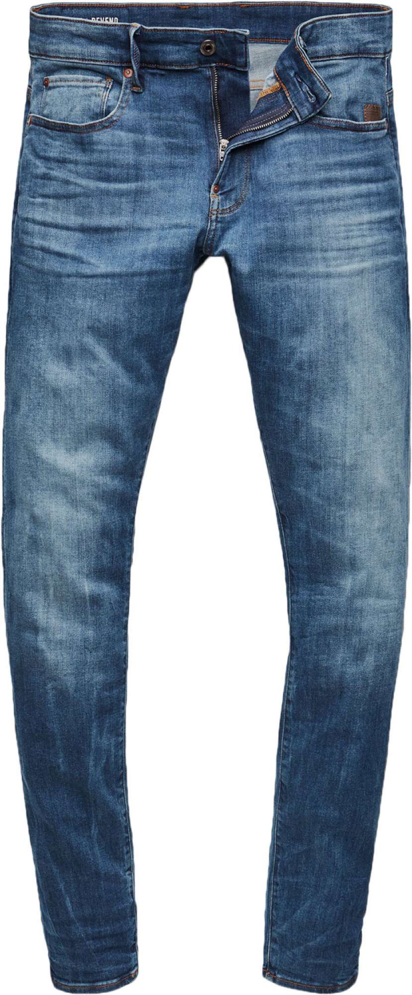 G-star model Revend in Elto super stretch blauwe denim. Een slimfit, skinny, aangesloten model met normale taillehoogte, ritssluiting en smalle pijpjes. Mediumblauwe denim kleur met used wassing. De Slub denim is met een dikke en dunne draad geweven en heeft daardoor een iets stoerdere uitstraling, voelt stevig, zacht en stretchy aan en blijft goed in shape. Revend valt normaal uit in de maat.