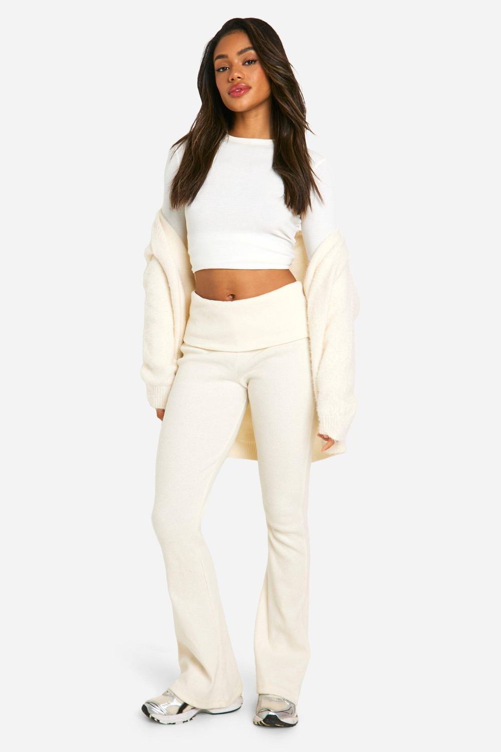 Geborstelde Rib Met Omgeslagen Tailleband en Uitlopende Broek – Geribbelde textuur voor extra visuele aantrekkingskracht Hoge taille voor een flatterend silhouet Uitlopende pijpen voor een retro-geïnspireerde look Rekbare stof voor comfort en bewegingsvrijheid Veelzijdige stijl geschikt voor diverse casual gelegenheden Maak een gedurfd statement met deze in het oog springende, geribbelde flares van Boohoo. Perfect voor de modebewuste vrouw die trends omarmt, bieden deze broeken een chique mix van comfort en stijl. De hoge taille accentueert je rondingen, terwijl de uitlopende pijpen een vleugje retro glamour aan je look toevoegen. Combineer ze met een cropped cardigan en sneakers voor een relaxte dagensemble, of kleed ze op met een aansluitende top en hakken voor een avondje uit met vrienden. De geribbelde textuur geeft diepte en interesse aan je outfit, waardoor deze broeken een opvallend stuk in je garderobe worden. Ideaal voor familiereünies, casual uitjes of gewoon om thuis stijlvol te loungen, zijn deze veelzijdige flares een must-have voor de trendy twintiger die zowel mode als comfort waardeert.