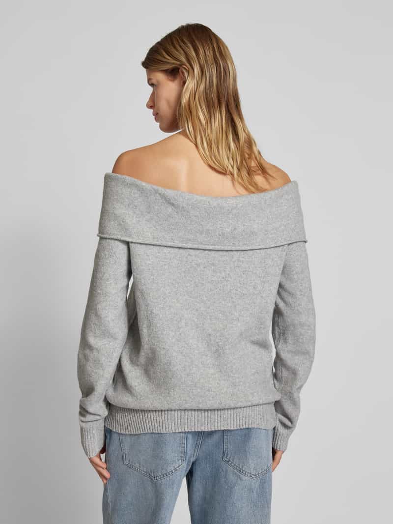 Gebreide damespullover van REVIEW;Recht model;Off shoulder-look;Boothals;Deelnaad;Elastische boordjes;Ruglengte bij maat S: 55 cm;Mouwlengte bij maat S: 64 cm