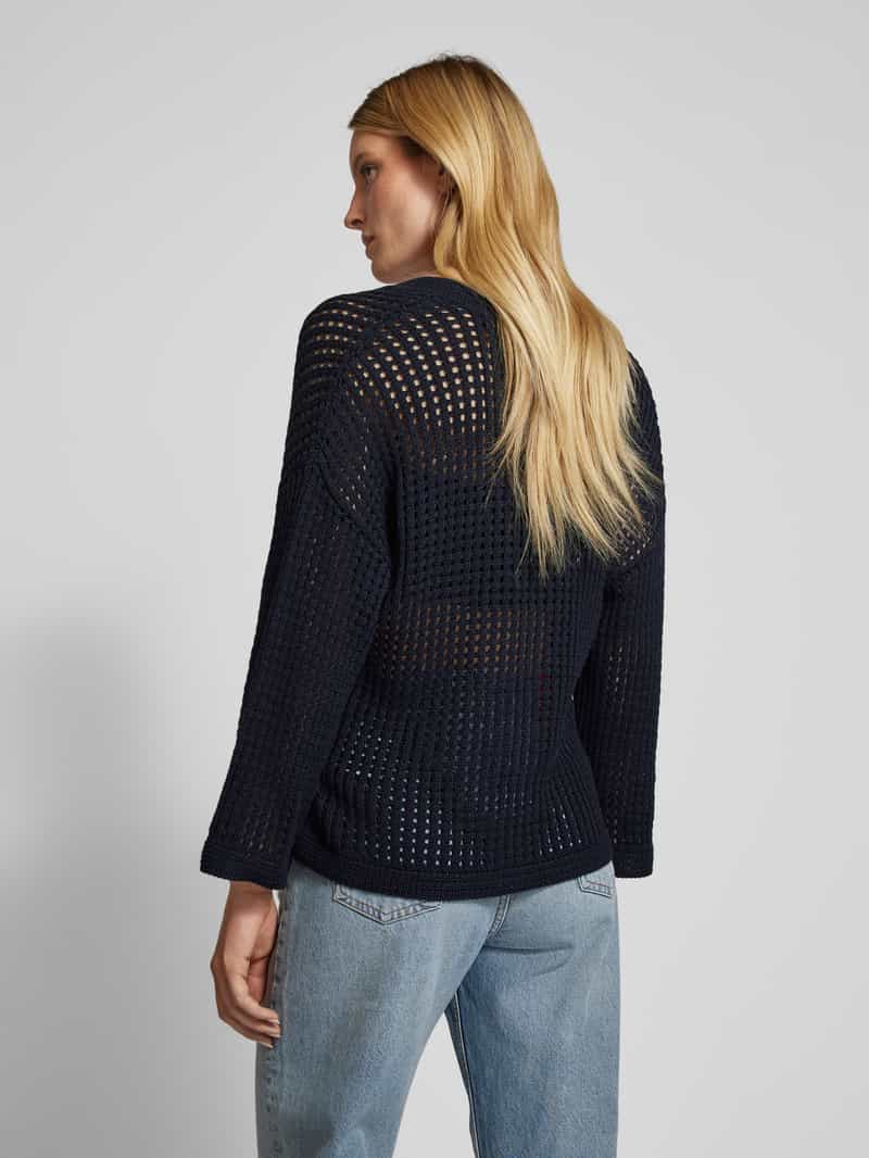 Gebreide damespullover van Smith and Soul;Los model;Gaatjesmotief;Afgeronde V-hals;Verbrede schouders;Ruglengte bij maat S: 43 cm;Mouwlengte bij maat S: 42 cm
