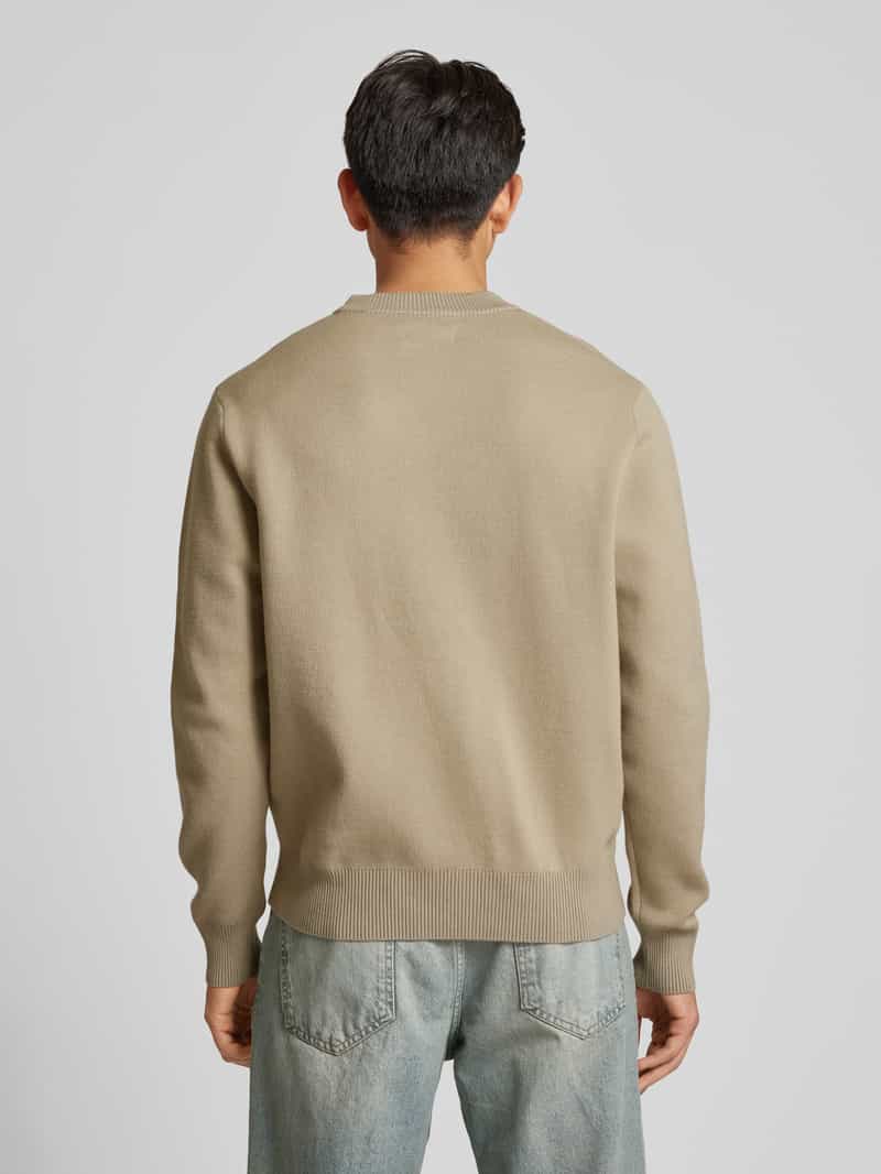 Gebreide herenpullover van JACK & JONES;Acetaatmix met viscose;Los model;Model ‘VESTERBRO’;Ronde hals;Labelprint;Ruglengte bij maat M: 64 cm;Mouwlengte bij maat M: 63 cm