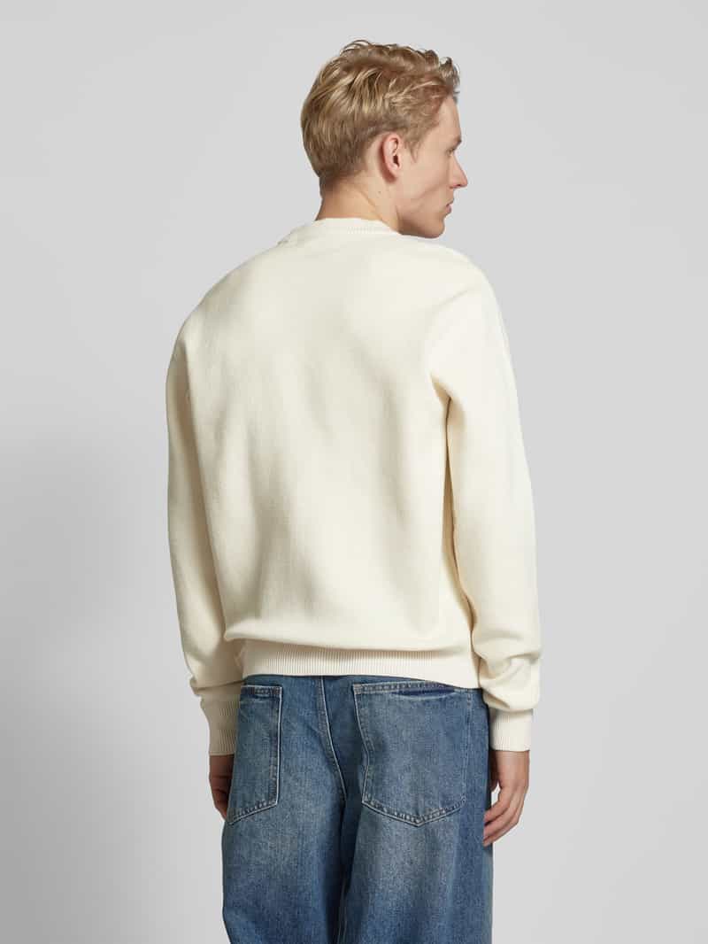 Gebreide herenpullover van JACK & JONES;Acetaatmix met viscose;Los model;Model ‘VESTERBRO’;Ronde hals;Labelprint;Ruglengte bij maat M: 64 cm;Mouwlengte bij maat M: 63 cm