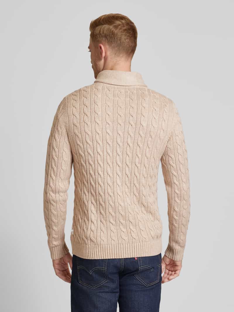 Gebreide herenpullover van JACK & JONES Premium;Materiaalmix met katoengehalte;Recht model;Model ‘CRASH’;Opstaande kraag;Ribboorden;Knoopsluiting;Kabelpatroon;Ruglengte bij maat M: 68 cm;Mouwlengte bij maat M: 71 cm