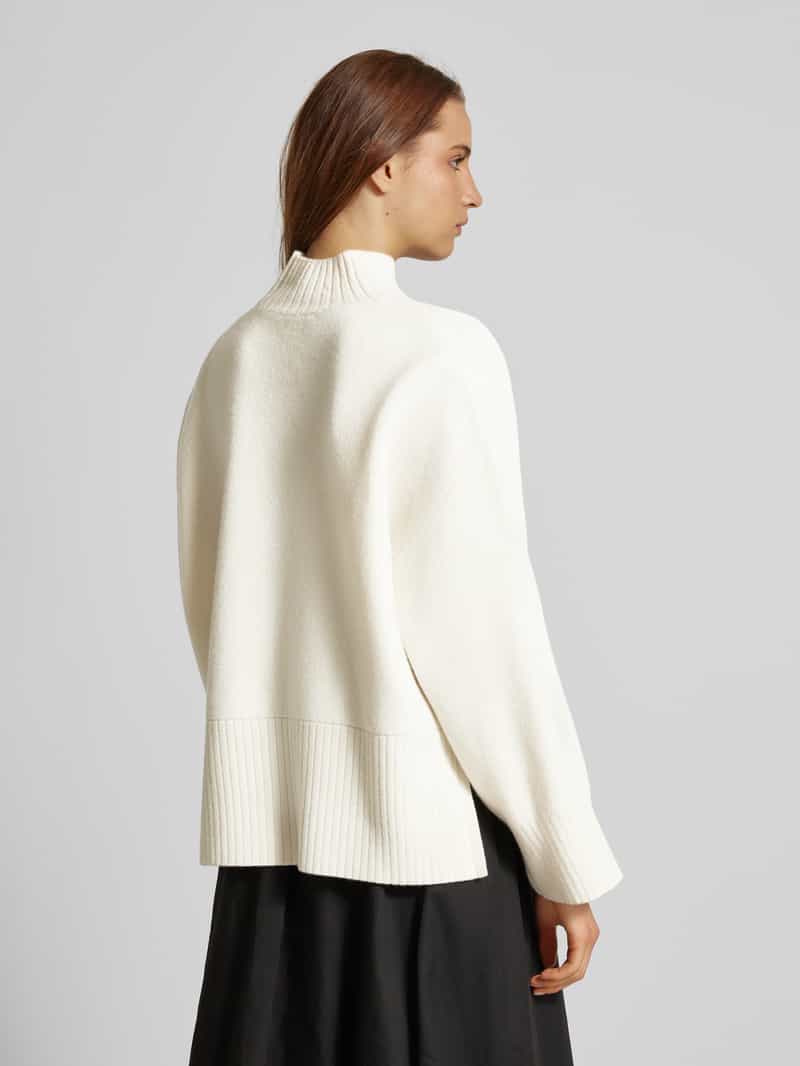 Gebreide damespullover van IVY OAK;Zuivere wol;Los model;Model ‘KAREEN’;Ribboorden;Opstaande kraag;Ruglengte bij maat S: 59 cm;Mouwlengte bij maat S: 49 cm