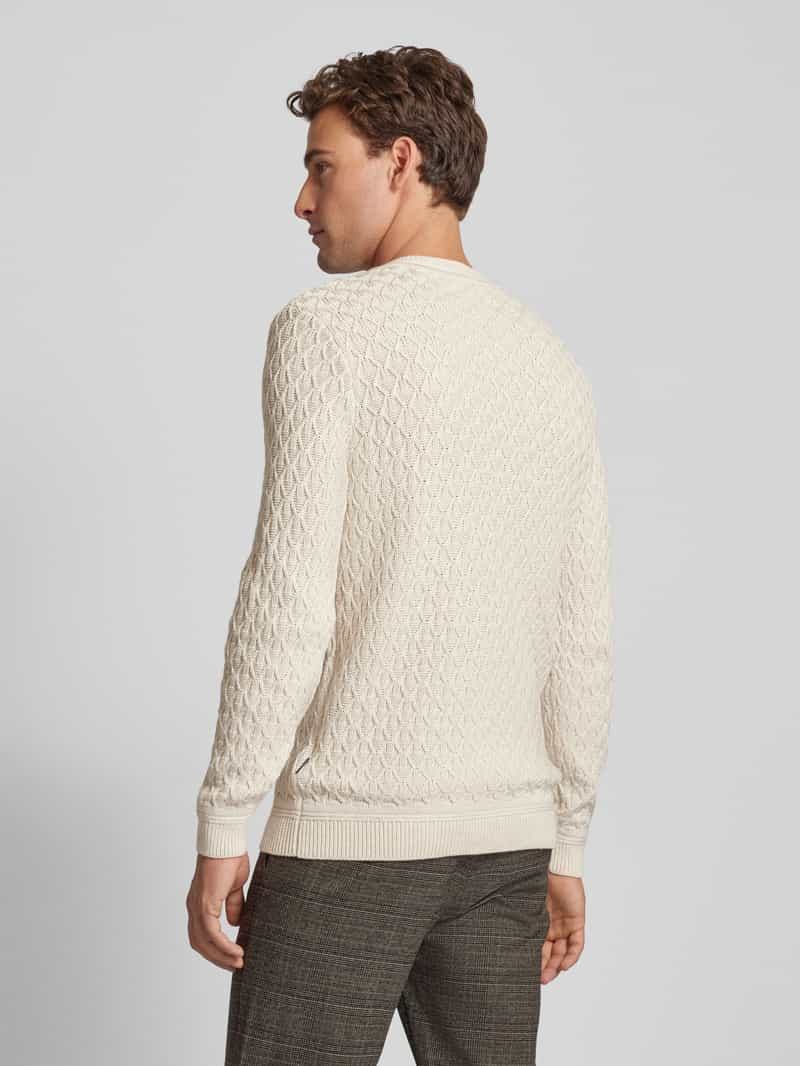 Gebreide herenpullover van GABBA;Puur katoen;Recht model;Model ‘AKSLA’;Ronde hals;Elastische boordjes;Ruglengte bij maat M: 64 cm;Mouwlengte bij maat M: 65 cm