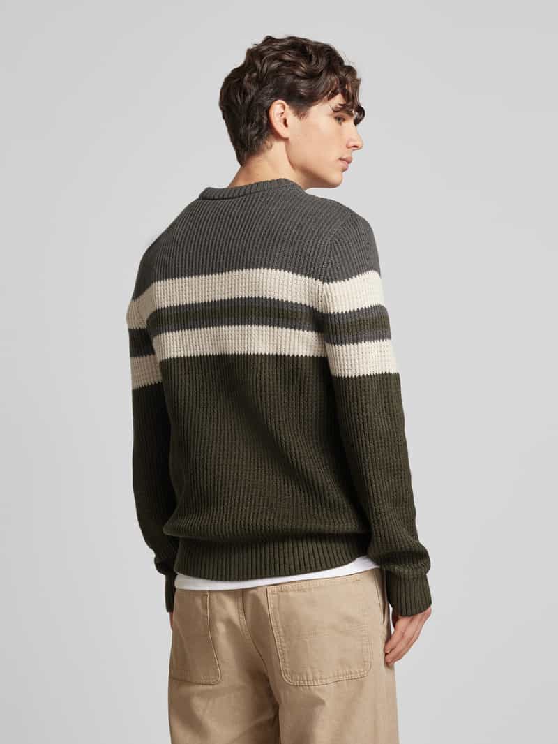 Gebreide herenpullover van JACK & JONES;Materiaalmix met katoengehalte;Nauwsluitende pasvorm;Model ‘SANDER’;Ronde hals;Ribboorden;Ruglengte bij maat M: 75 cm;Mouwlengte bij maat M: 68 cm
