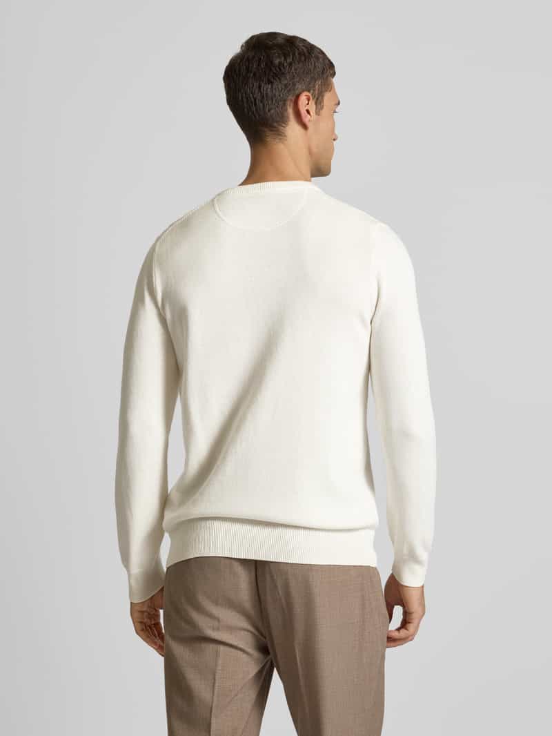 Gebreide herenpullover van Christian Berg Men;Katoenmix met wol;Recht model;Ronde hals;Labelstitching;Ruglengte bij maat M: 64 cm;Mouwlengte bij maat M: 69 cm