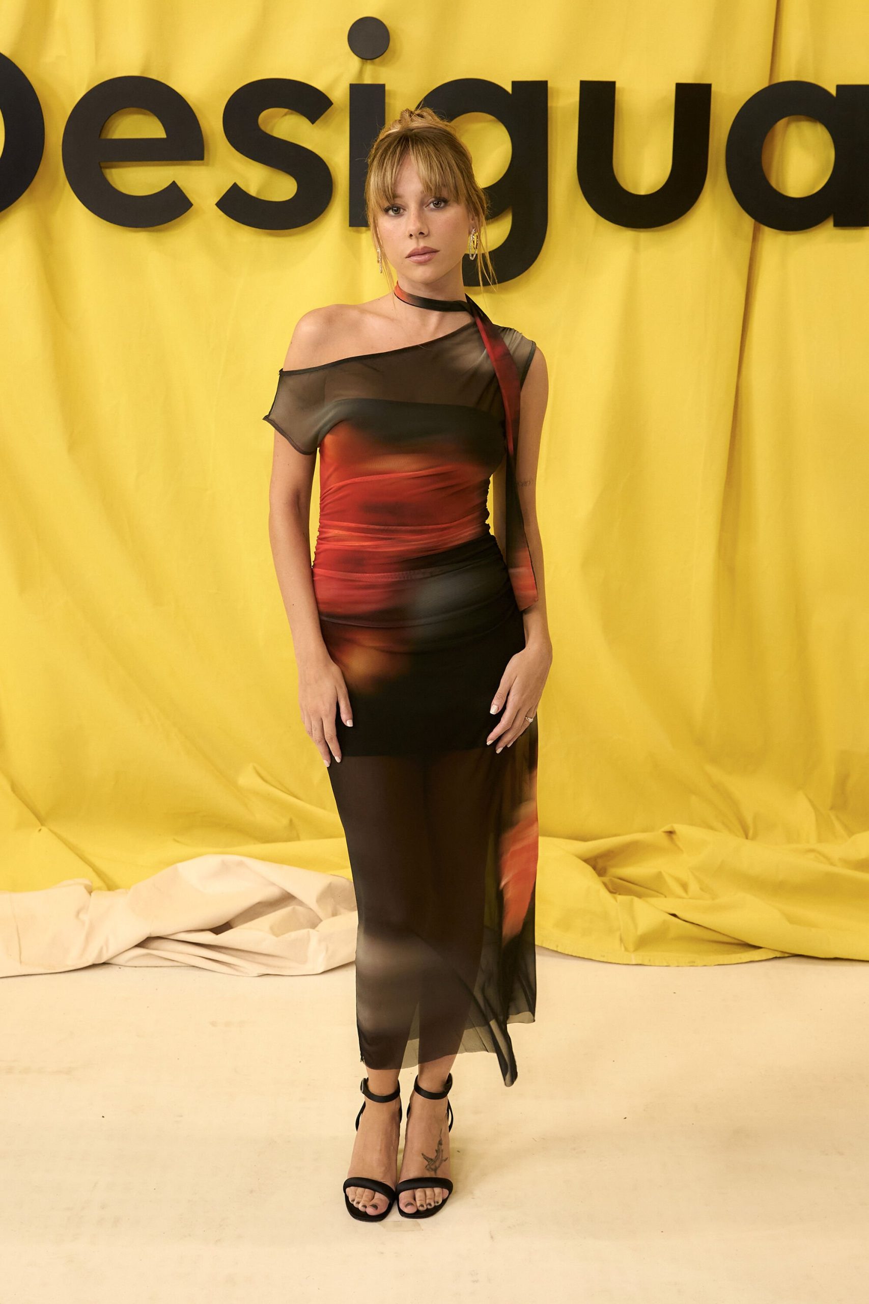 Midijurk van chiffon, met zijplooien, mouwloos, asymmetrische halslijn en strik