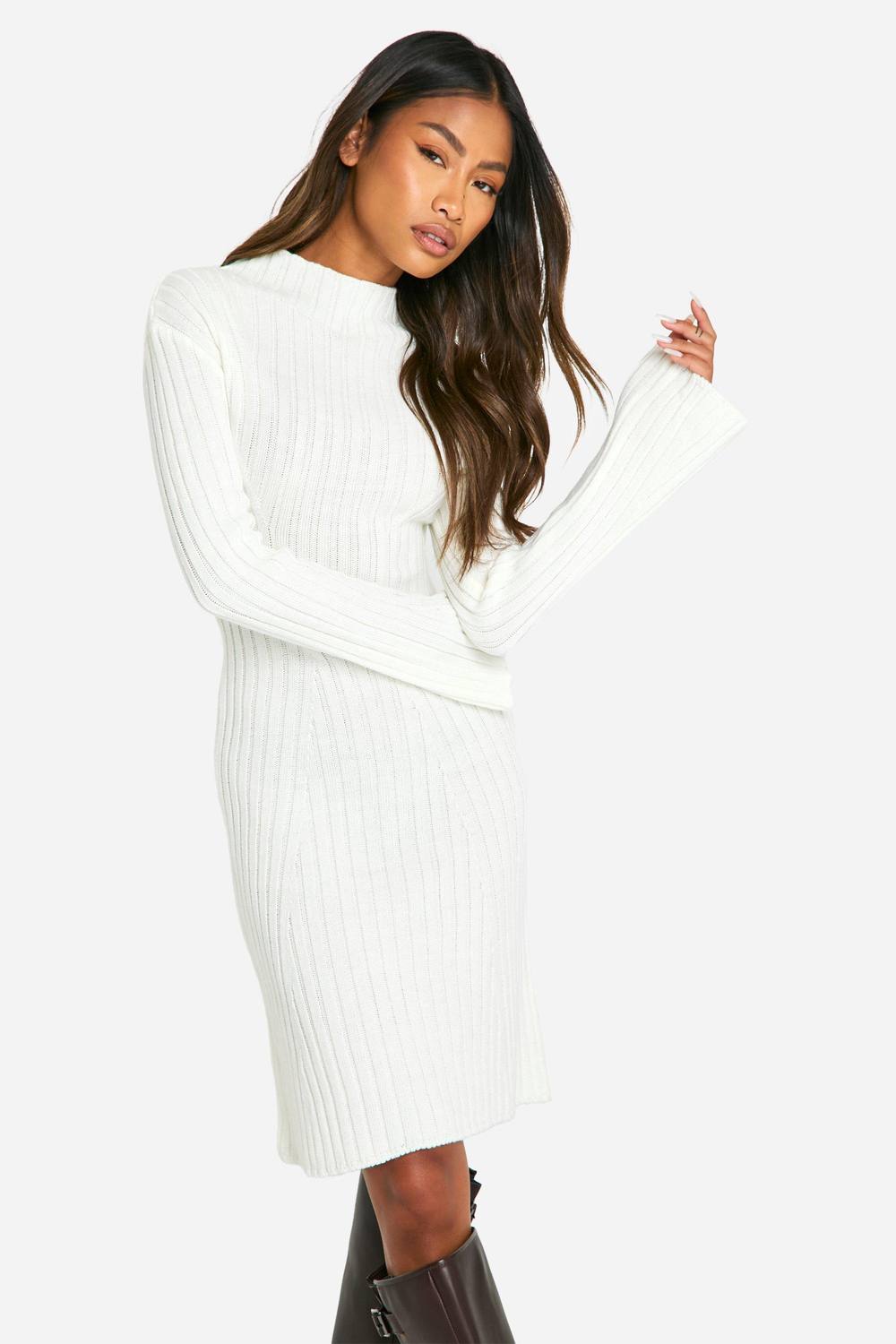 Gemengde ribgebreide mini-jurk met uitlopende mouwen