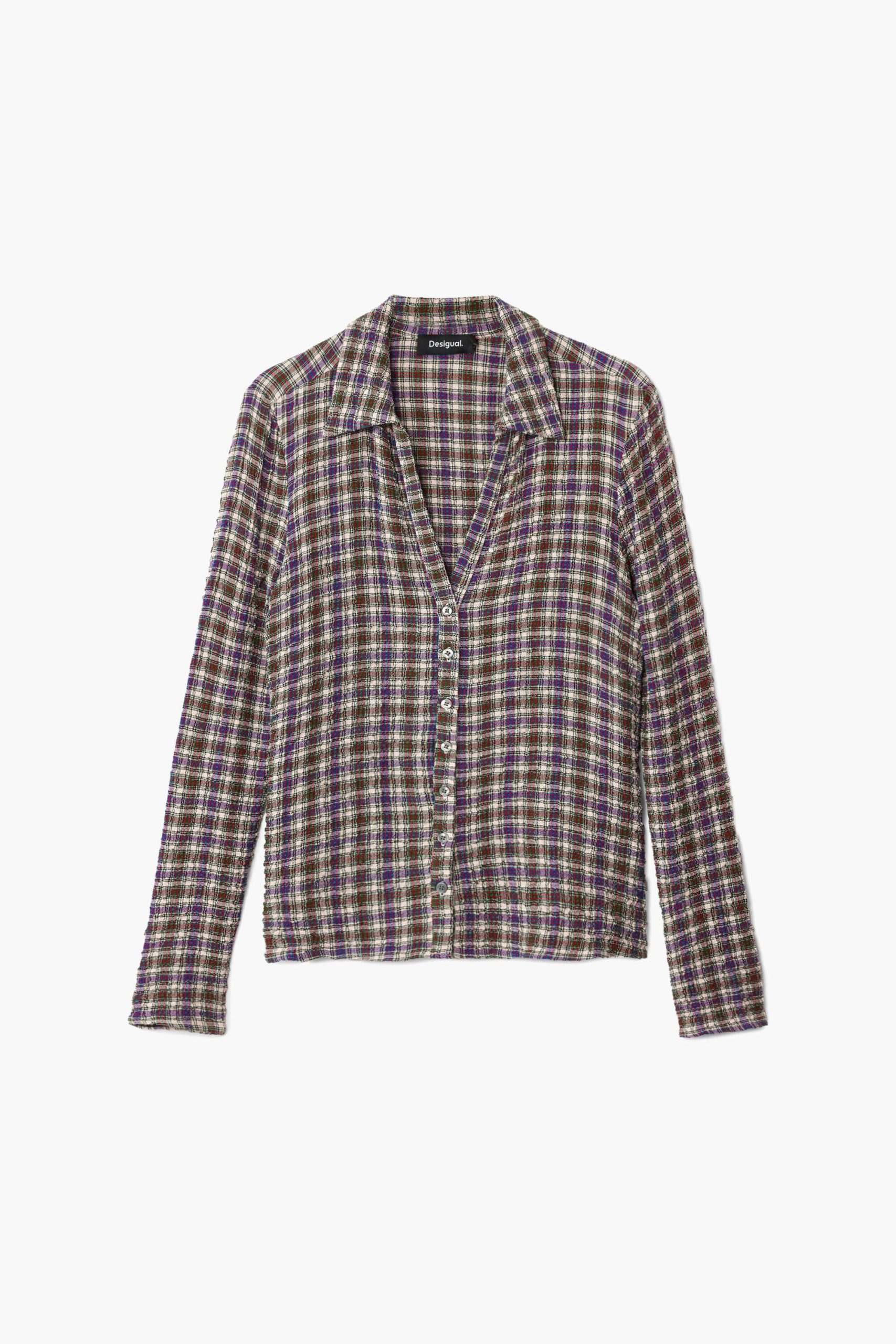 Langarmhemd met V-hals en knoopsluiting met ruitjespatroon