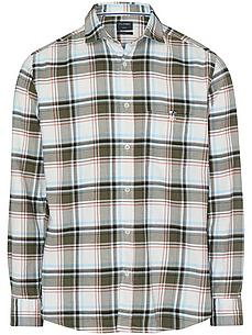 Geruit overhemd van OLYMP. Heerlijk zacht en perfect te combineren Hoogwaardige flanel in moderne, smalle pasvorm met kentkraag, 2-knoopsmanchet en borstzak met logomerkje. Van 100% katoen. Taillewijdte in maat 41/42 ca. 100 cm. Dit geruite overhemd is machinewasbaar. fijnwas tot 40°. chloorbleken niet mogelijk. koud strijken. niet chemisch te reinigen. drogen in de droger niet mogelijk. 45/46