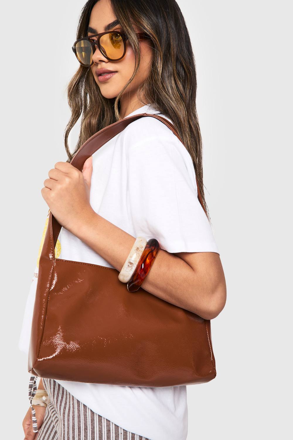 Home » Dames » Tassen » Schoudertassen » Getextureerde Patent Schoudertas, Tan