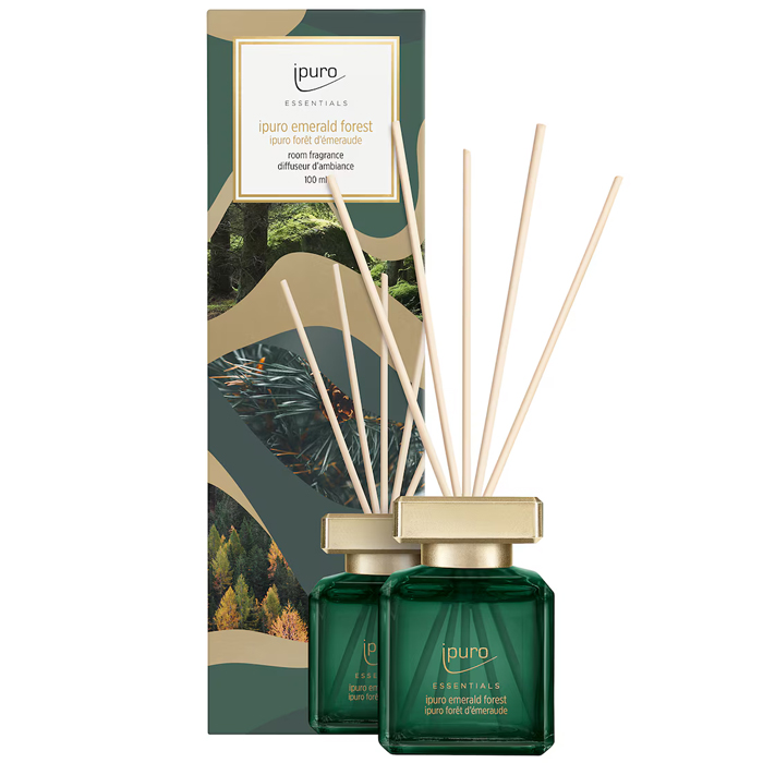 Geurstokjes uit de Golden Chapter collectie van Ipuro. Emerald Forest neemt je mee op een ontspannen wandeling door het herfstbos. Ervaar de aromatische geur van eucalyptus, dennennaalden en lotus, omhuld met delicate noten van lavendel en salie en afgerond met robuuste houttonen, witte muskus en rode bessen. Deze boeiende mix zorgt voor een serene en uitnodigende sfeer in huis.Topnoten: lotus, eucalyptus, dennennaaldHartnoten: lavendel, salie, sparBasisnoten: cederhout, rode bessen, witte muskusVoor een optimale geurbeleving raden wij aan de Ipuro Emerald Forest geurstokjes iedere 4-5 dagen om te draaien.