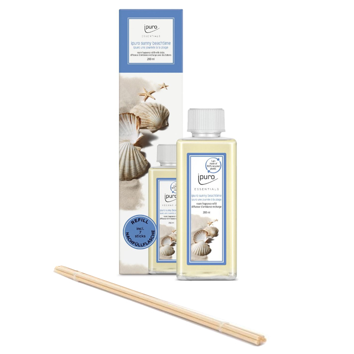 De Sunny Beachtime 200 ml navulling kan worden gebruikt voor het bijvullen van de Sunny Beachtime geurdiffuser. Deze navulverpakking bevat tevens een setje nieuwe stokjes.De Sunny Beachtime geurstokjes verspreiden een heerlijke geur die doet denken aan de zomer met zon, zee en een heerlijk relaxed dagje aan het strand.Hoofdnoot: grapefruit, limoen, mintHartnoot: jasmijn, lelies, rozenBasisnoot: witte musk, tonka boon