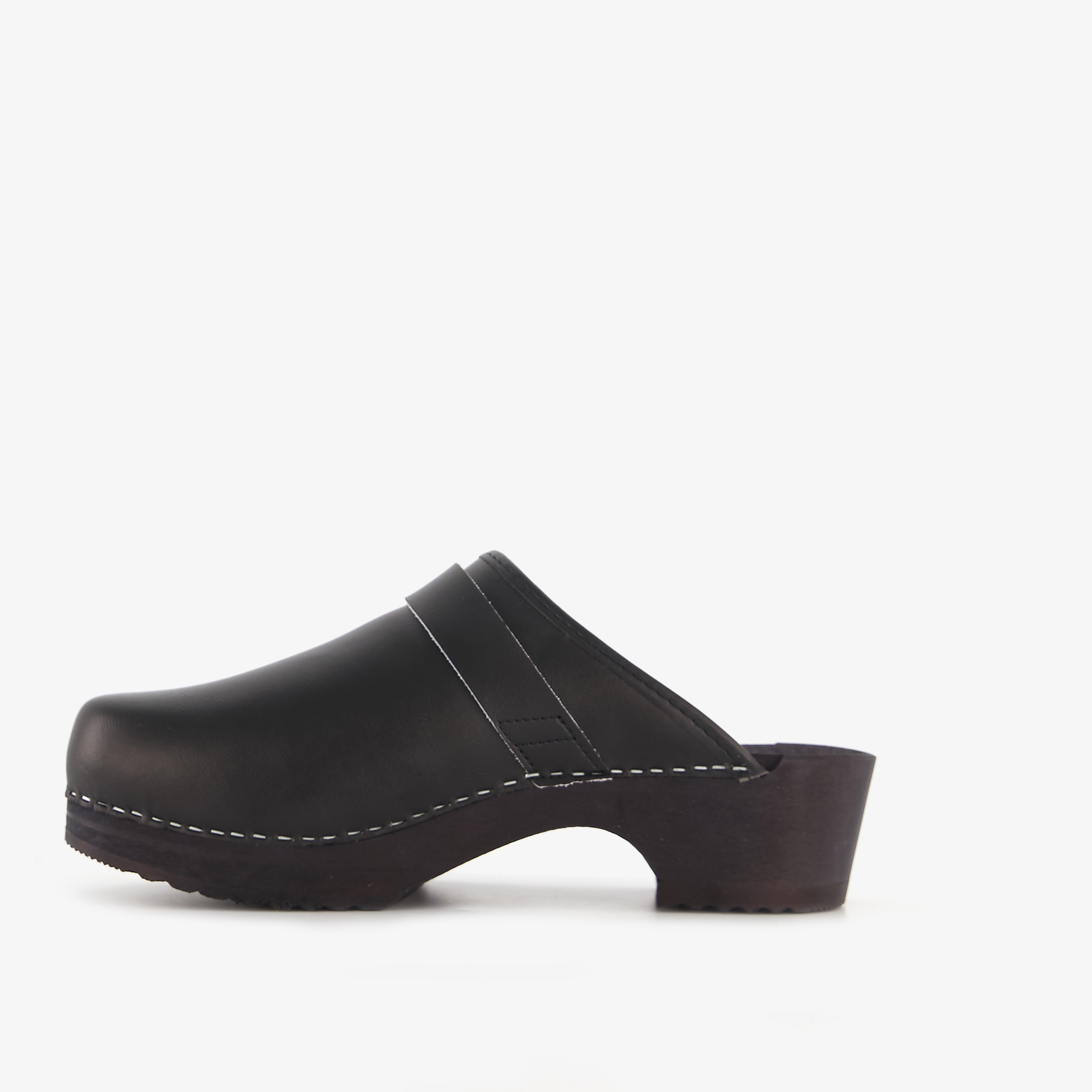 Zwarte Gevavi klompen voor dames en heren. De klompen zijn gemaakt van leer en hebben een houten binnenzool. De buitenzool met profiel is van rubber. Deze Gevavi klompen hebben een robuuste uitstraling, maar zijn bijzonder licht en daardoor prettig om te dragen.