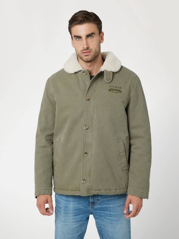 Dobby jack van gecoat katoen met voering van imitatie bont.Klassieke kraag en lange mouwen.Geborduurd logo, zijzakken.Regular fit.Sluiting met knopen.Het model draagt maat M.Zie onze bovenstaande maattabel.Totale lengte: 71,5 cm / 28,2 inch.Mouwlengte: 66,3 cm / 26,1 inch.Valt normaal op maat.