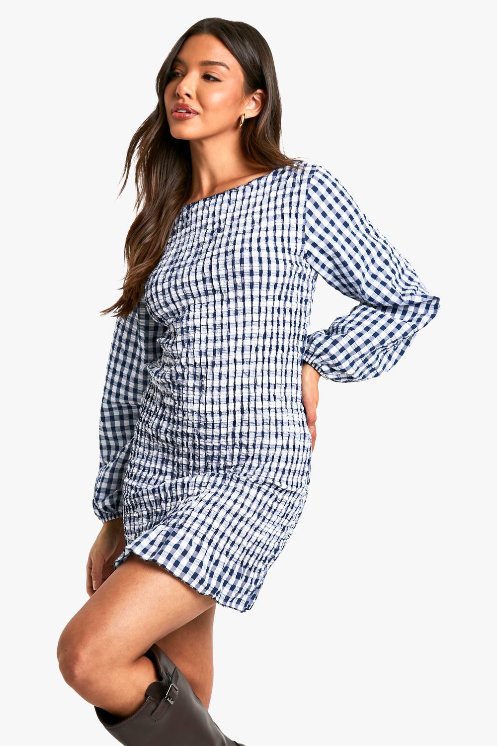 Charmant gingham patroon voor een klassiek en speels uiterlijk Gerafeld detail dat textuur en een flatterende vorm toevoegt Lange ballonmouwen voor een trendy, romantische uitstraling Mini lengte, perfect om je benen te laten zien Veelzijdige ronde hals die bij verschillende stylingopties past Omarm de tijdloze charme van gingham met deze heerlijke mini jurk van Boohoo. Het gerafelde detail creeert een figuurschonerende silhouet, terwijl de lange ballonmouwen een vleugje romantiek toevoegen aan de totale look. Perfect voor informele uitjes, kan deze jurk op meerdere manieren gestyled worden om bij je stemming te passen. Combineer hem met enkellaarsjes en een chunky cardigan voor een gezellige herfstoutfit, of kleed hem op met bandjes sandalen en opvallende oorbellen voor een tuinfeest. De mini lengte maakt het ideaal om je favoriete schoenen te showen, of je nu kiest voor sneakers voor een relaxte uitstraling of laarzen met hakken voor een meer verzorgde look. Dit veelzijdige item gaat moeiteloos over van dag naar nacht, waardoor het een must-have is in je garderobe voor diverse casual gelegenheden. boohoo Dames Gingham geplooide lange mouw mini jurk | Navy | Maat: 36