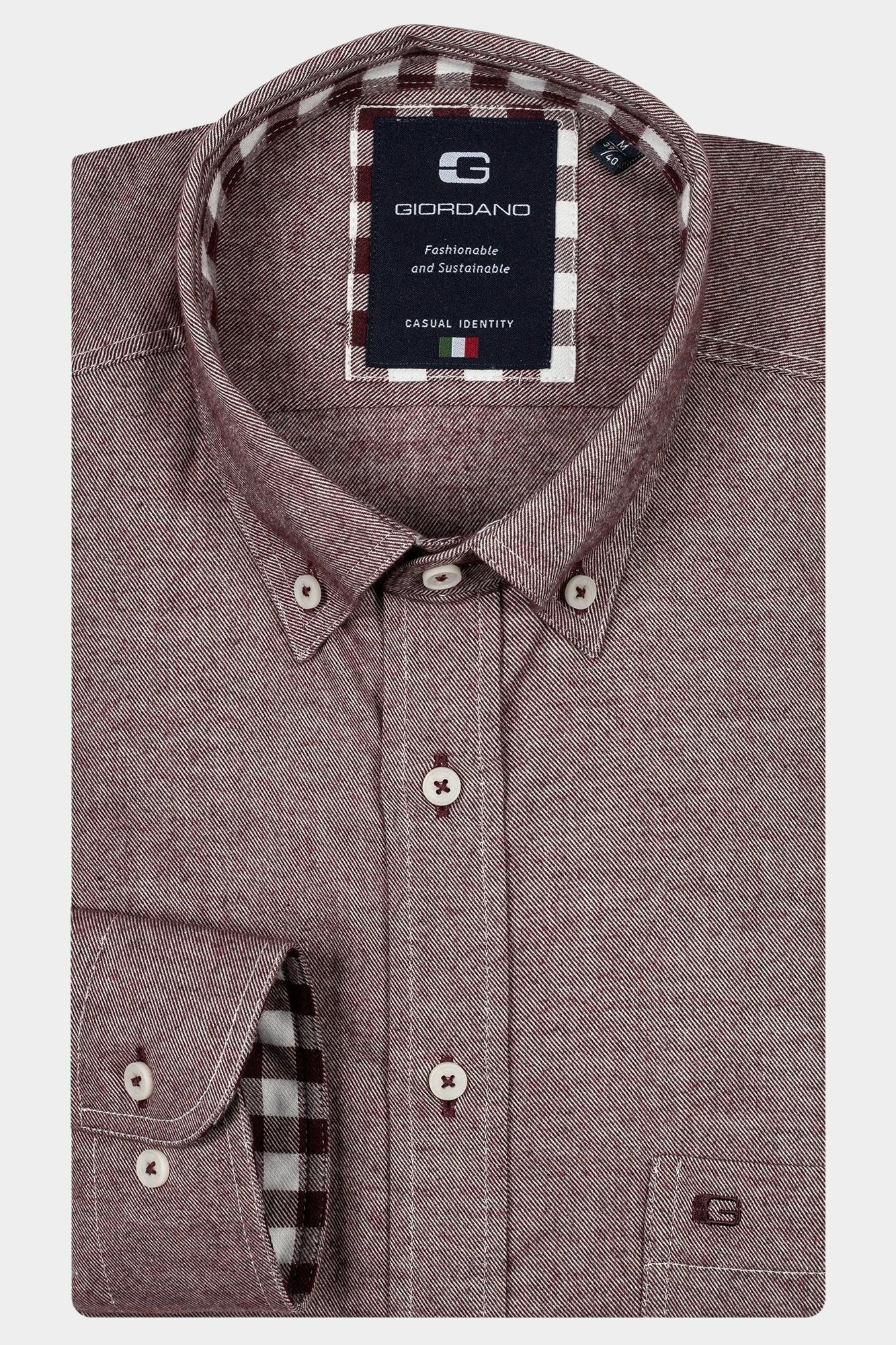 Dit rode casual overhemd van Giordano is perfect voor de herfst en winter. Het overhemd is gemaakt van 100% katoen en heeft lange mouwen, waardoor het heerlijk comfortabel is om te dragen. De regular fit zorgt voor een mooi silhouet en biedt voldoende bewegingsvrijheid. Dit overhemd is gemakkelijk te onderhouden, doordat het gewassen kan worden tot 30°C. De wide spread kraag geeft een moderne en stijlvolle uitstraling aan het overhemd. Draag dit overhemd op een stoere jeans voor een casual look, of combineer het met een chino voor een nettere outfit. Het rode overhemd is een echte eyecatcher en zal zeker voor positieve reacties zorgen. Kortom, dit overhemd van Giordano is een must-have item voor je kledingkast. Bestel hem nu in onze webshop en ervaar zelf het comfort en de stijl van dit prachtige heren overhemd.