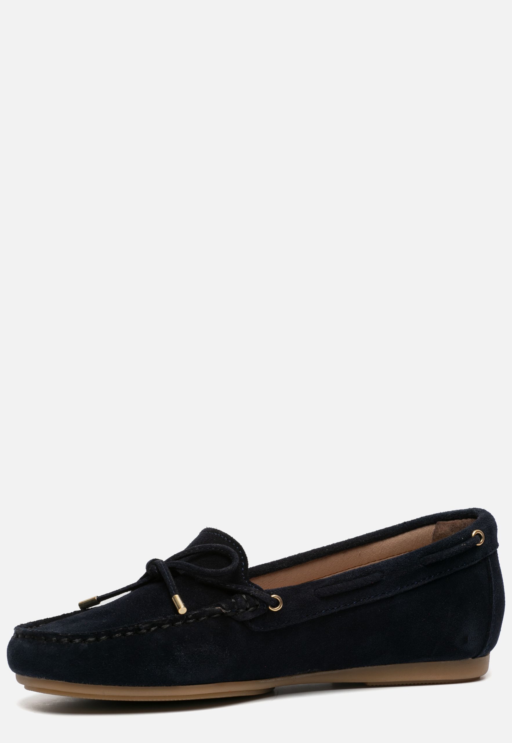 De blauwe Giulia mocassins combineren stijl met comfort. Het zijn fijne schoenen voor het voorjaar en de zomer. Je combineert ze eindeloos met zowel leuke jurkjes en rokjes als een jeans of pantalon. Het bovenwerk is gemaakt van suède en de schoenen hebben een voering en binnenzool van leer. De mocassins hebben een comfortabel en zacht voetbed voor optimaal loopcomfort. De perforaties in het voetbed zorgen voor een ademende werking. Leuke details zijn de omhoog gestikte neus en de veter met strik. De rubberen zool is flexibel en zorgt voor grip tijdens het lopen. De blauwe Giulia Mocassins hebben een vast voetbed.