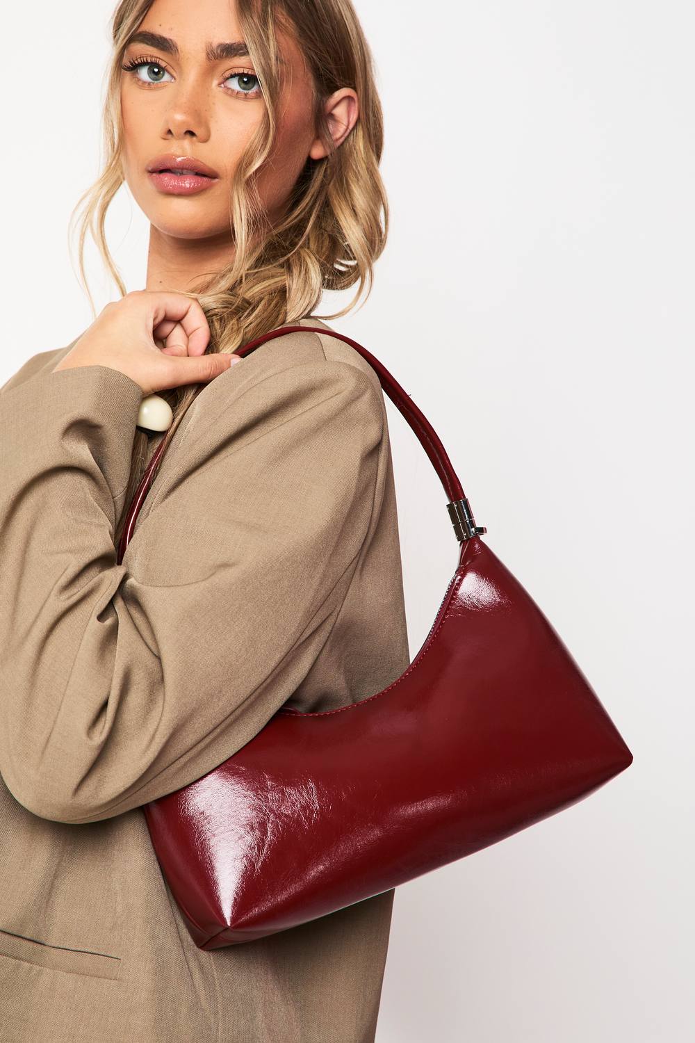 Home » Dames » Tassen » Schoudertassen » Glanzende Pu Schoudertas Met Crossbody Riem, Burgundy