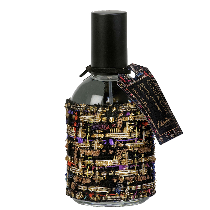 De Gold&Chic pillow mist is speciaal ontwikkeld in de Franse parfumstad Grasse. Een paar spraytjes in de lucht zijn voldoende om de ruimte subtiel te parfumeren met een moderne geurmix van appel, tonkaboon en cederhout. De pillow mist laat geen vlekken achter en is daarom ook ideaal voor het opfrissen en subtiel parfumeren van kleding, lakens, kussens of huishoudlinnen. De flacon is omhuld met tweed, dat tijdloos en chic is en zorgt voor een hippe retro uitstraling.
