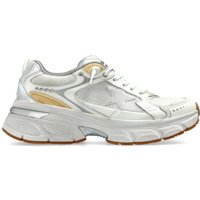 Golden Goose presenteert de LightStar Logo Sneakers, het toonbeeld van moderne sportieve schoenen, vervaardigd met een stijlvolle gelaagde ontwerp. Deze sneakers hebben een onberispelijke witte leren basis, aangevuld met subtiele zilveren en beige accenten, en tonen het iconische sterlogo prominent op de zijkant. De chunky silhouette wordt verhoogd door een dikke rubberen zool met een gum buitenzool, wat zowel mode als comfort garandeert. De vetersluiting zorgt voor een snug fit, terwijl merkdetails op de tong en hak de luxe in elke stap benadrukken. Specificaties: – Merk: Golden Goose – Materiaal: Leer en Textiel – Herkomst: Made in Italy – Stijl: Chunky, Sportief, Casual