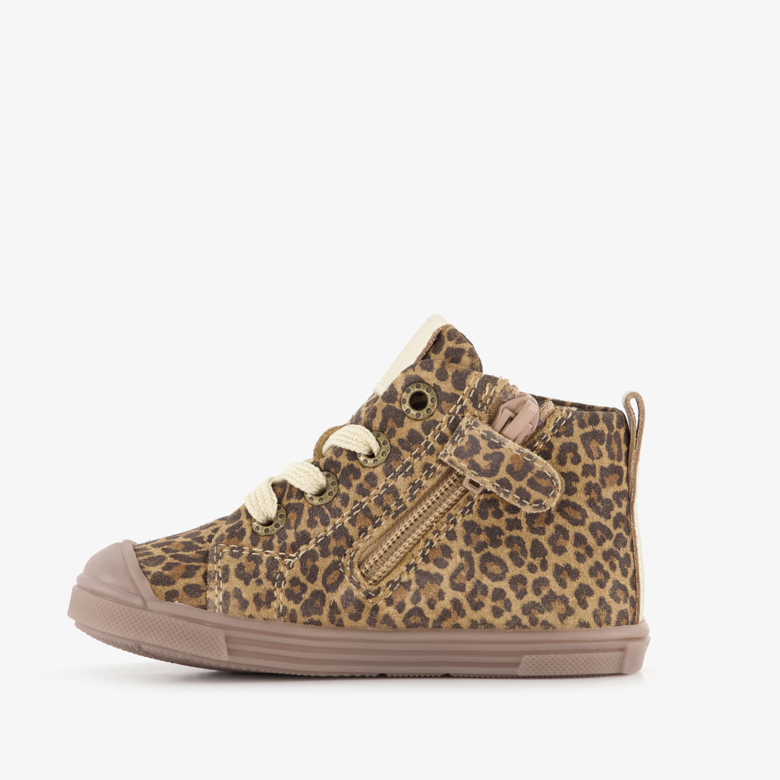 Bruine veterschoenen met panterprint voor meisjes van Groot. Het buitenwerk en binnenwerk zijn van leer, en de stevige buitenzool is van rubber. De schoenen zijn voorzien van een vetersluiting en een ritssluiting met een klittenbandje aan de binnenzijde voor een optimale pasvorm. Dankzij de hiellusjes is de instap extra gemakkelijk. Ze hebben goudkleurige details en een comfortabele, uitneembare binnenzool van leer.