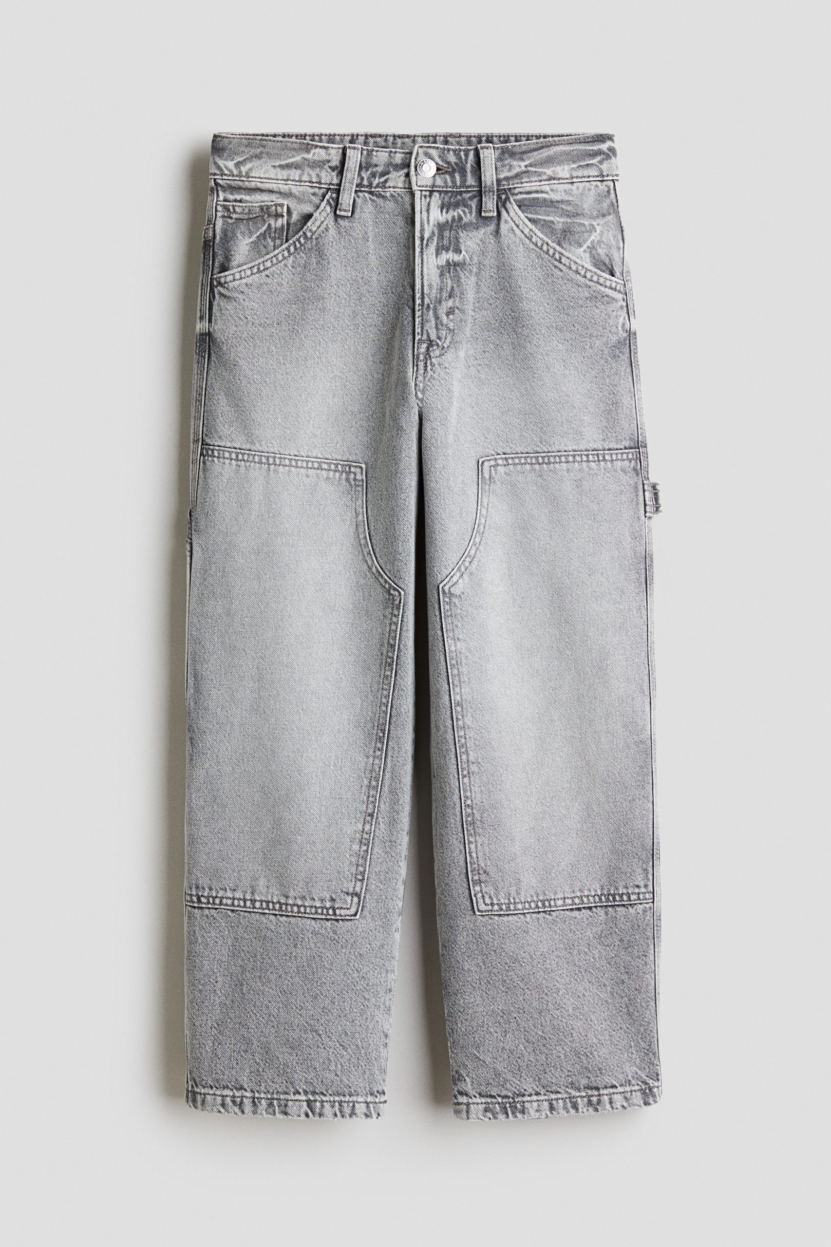 Carpenterjeans van katoenen denim met opgestikte details. Het model heeft verstelbaar elastiek in de taille, een ruime pasvorm bij de heupen en de bovenbenen en een verlaagd kruis. Gulp met ritssluiting en knoop, muntzakje, schuin ingezette steekzakken, achterzakken, kleine opgestikte zak op de ene pijp en een hamerlus op de andere pijp.
