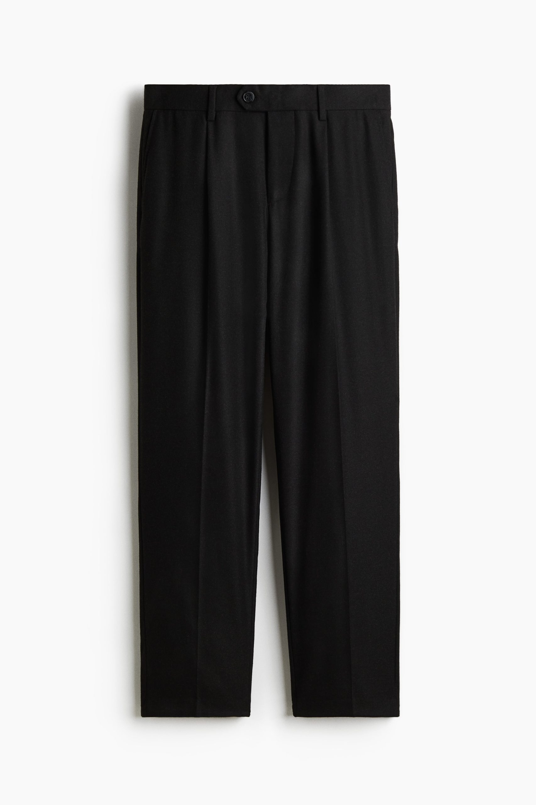 Een bandplooibroek van zachte, geweven kwaliteit met een broekband met een blinde haak-en-oogsluiting en een knoop en een gulp met een ritssluiting. Het model heeft steekzakken, ingezette achterzakken met knoop en smal toelopende pijpen met persvouwen voor en achter. Regular Fit voor een comfortabele pasvorm en een klassiek silhouet.