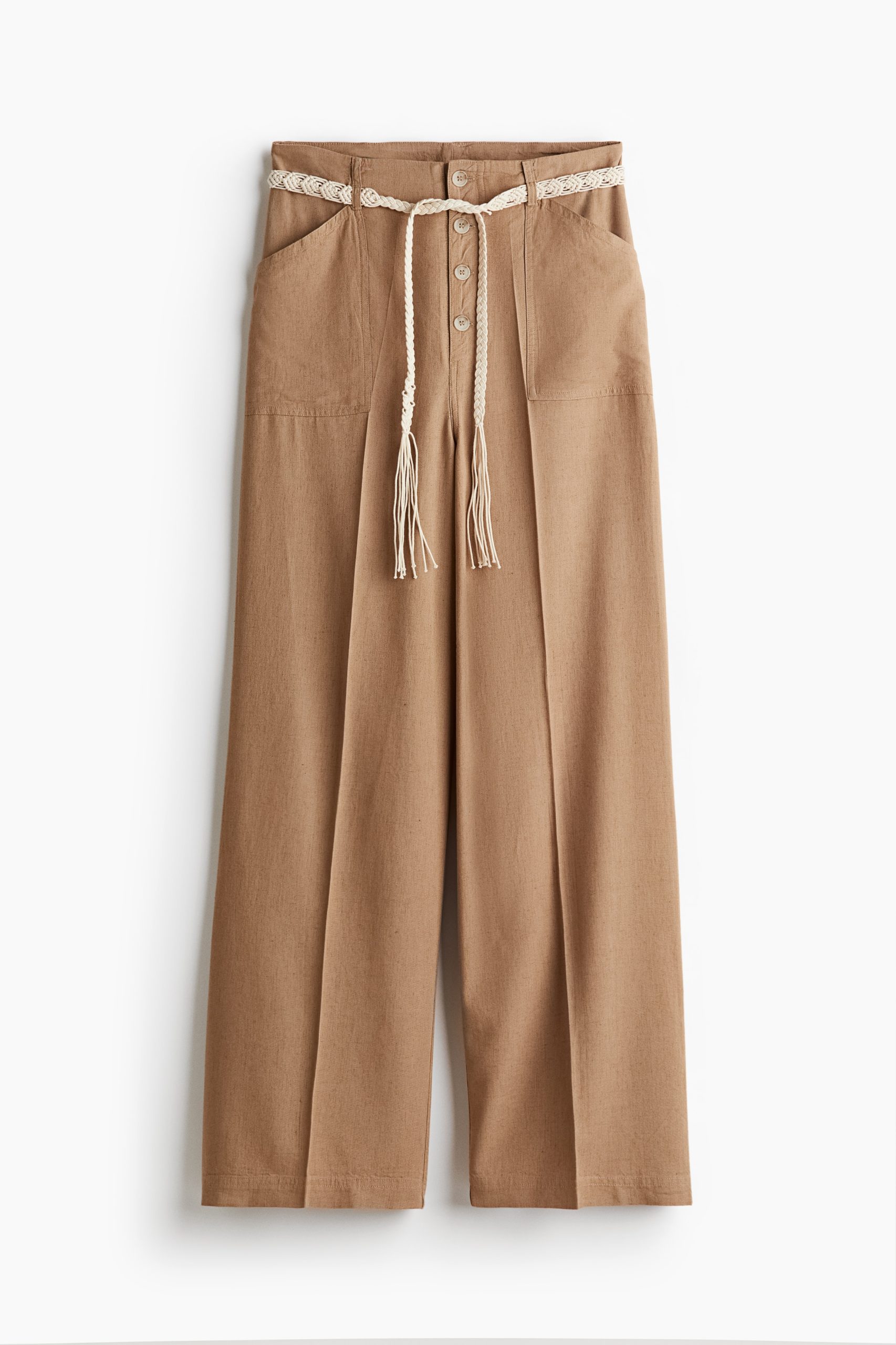 H & M – Broek van linnenmix met strikceintuur – Beige