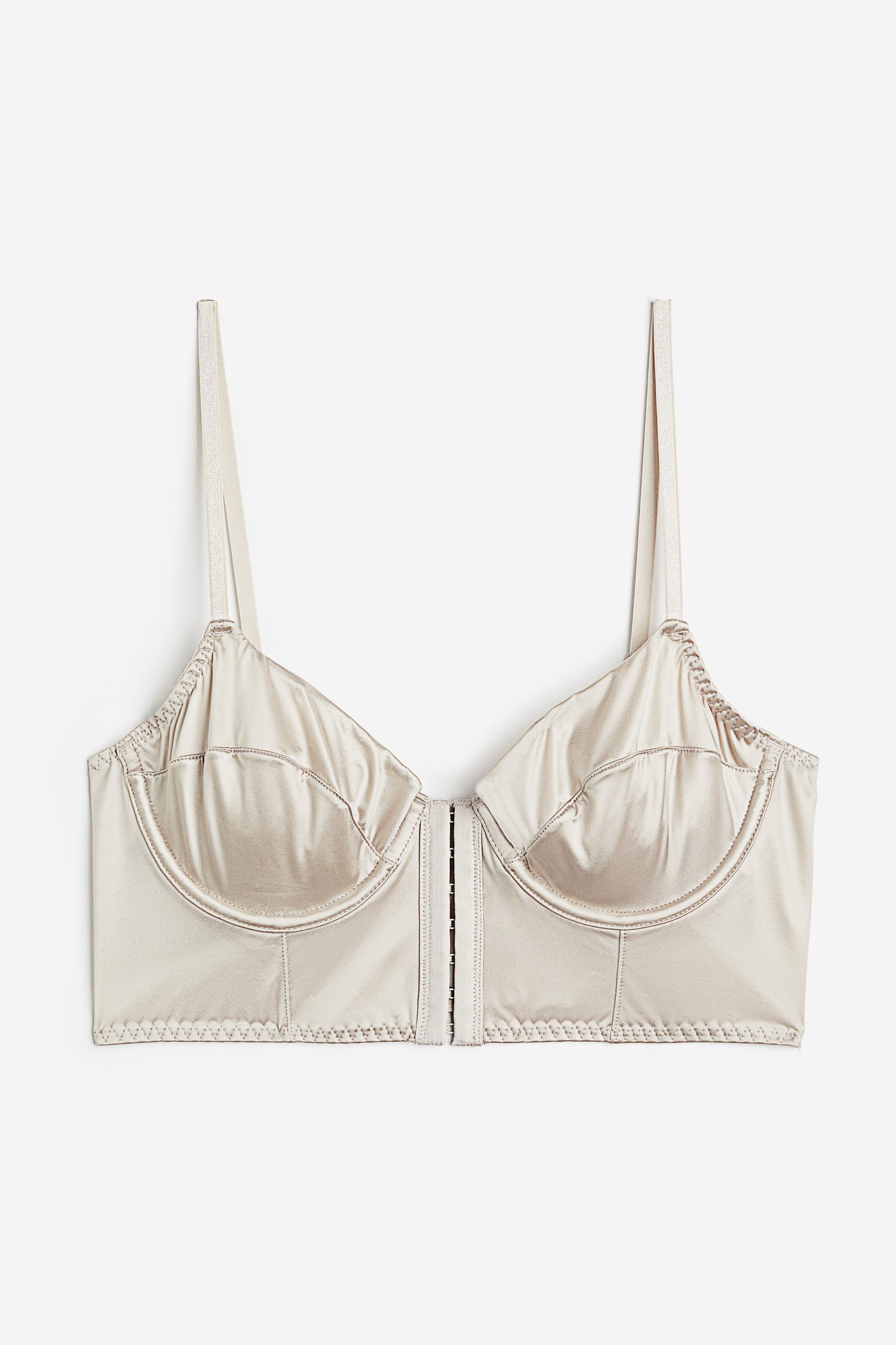 Een bustier met gevoerde, non-padded cups met beugel en een voering van mesh die de borsten een natuurlijke vorm geven en licht ondersteunen. Het model heeft verstelbare schouderbandjes, smal elastiek aan de boven- en onderkant en een brede haak-en-oogsluiting voor.