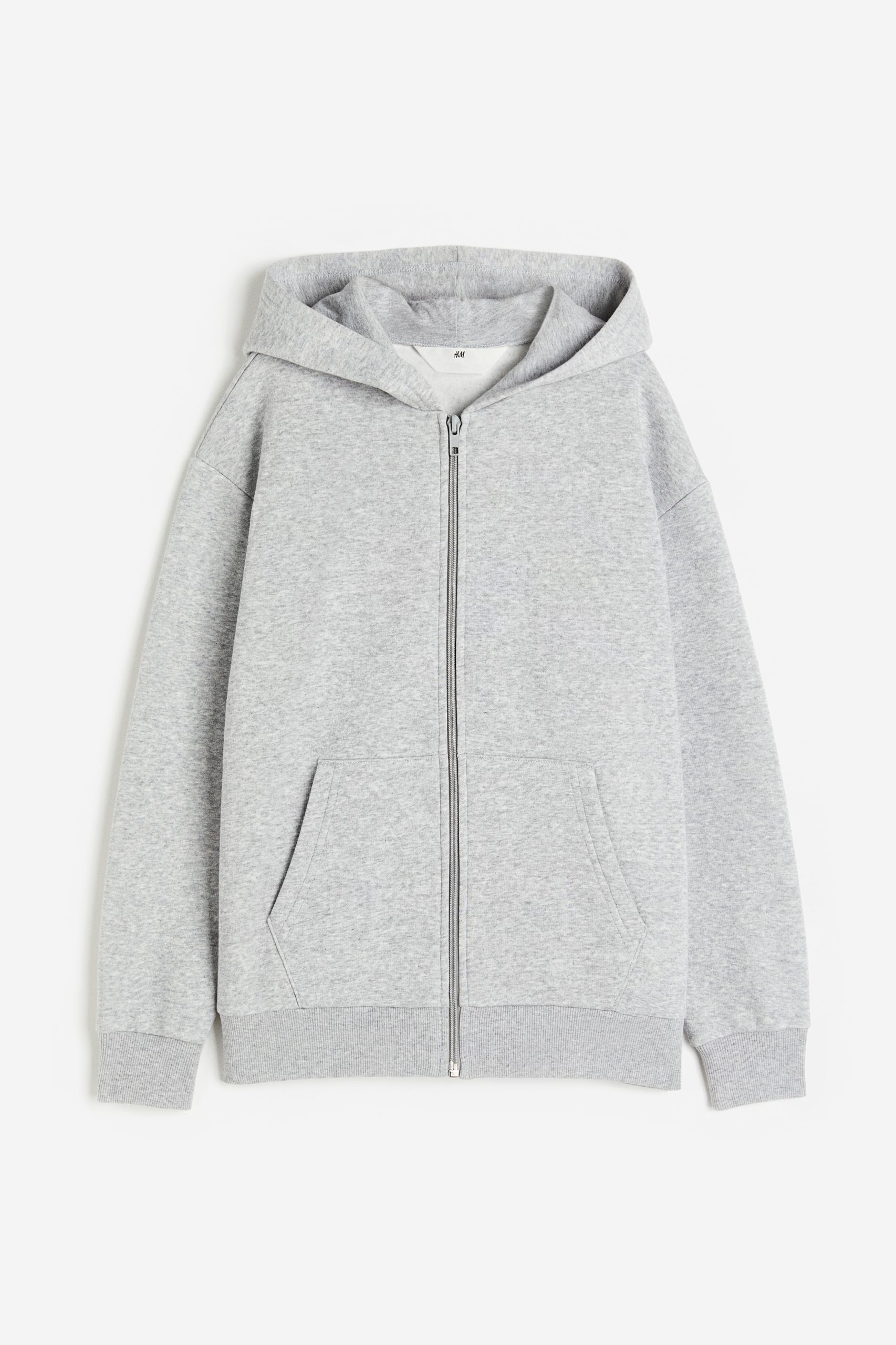Een sweater van joggingstof met een zachte, geruwde binnenkant. Het model heeft een ruime pasvorm, een gevoerde capuchon, een ritssluiting voor, verlaagde schoudernaden, kangoeroezakken en een geribde boord aan de onderkant en onder aan de mouwen.
