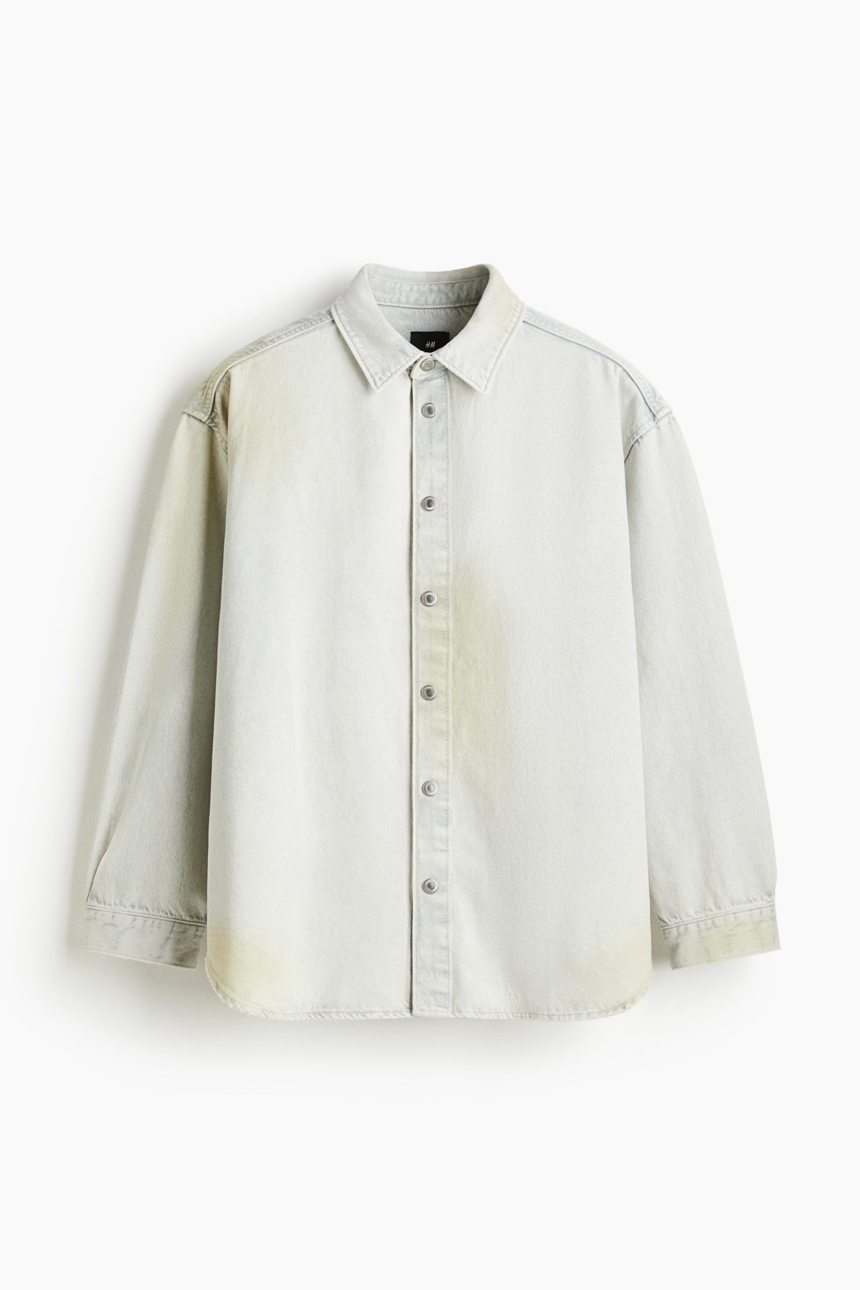Een overhemd van stevig katoenen denim met een turndown boord, een klassieke knoopsluiting met metalen knopen, een schouderpas achter, verlaagde schoudernaden en een afgeronde belijning aan de onderkant. Het model heeft lange mouwen met een knopenlijst en een manchet met knoopsluiting. Oversized Fit voor een extra ruim, baggy silhouet.