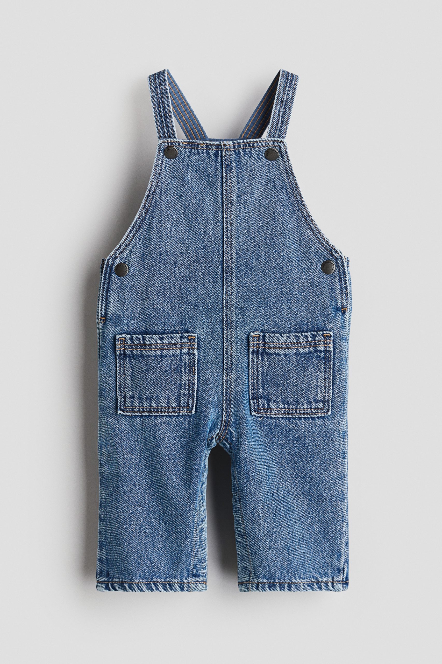 H&M Adorables. Een denim salopette van katoenmix met verstelbare bretels en een drukknoopsluiting boven en aan de zijkanten. Het model heeft opgestikte zakken voor en een blinde drukknoopsluiting overlangs op de pijpen om het aan- en uittrekken te vereenvoudigen (niet in maat 92-104). H&M Adorables is een met zorg samengestelde collectie van mooie, hoogwaardige items met een tijdloze uitstraling.