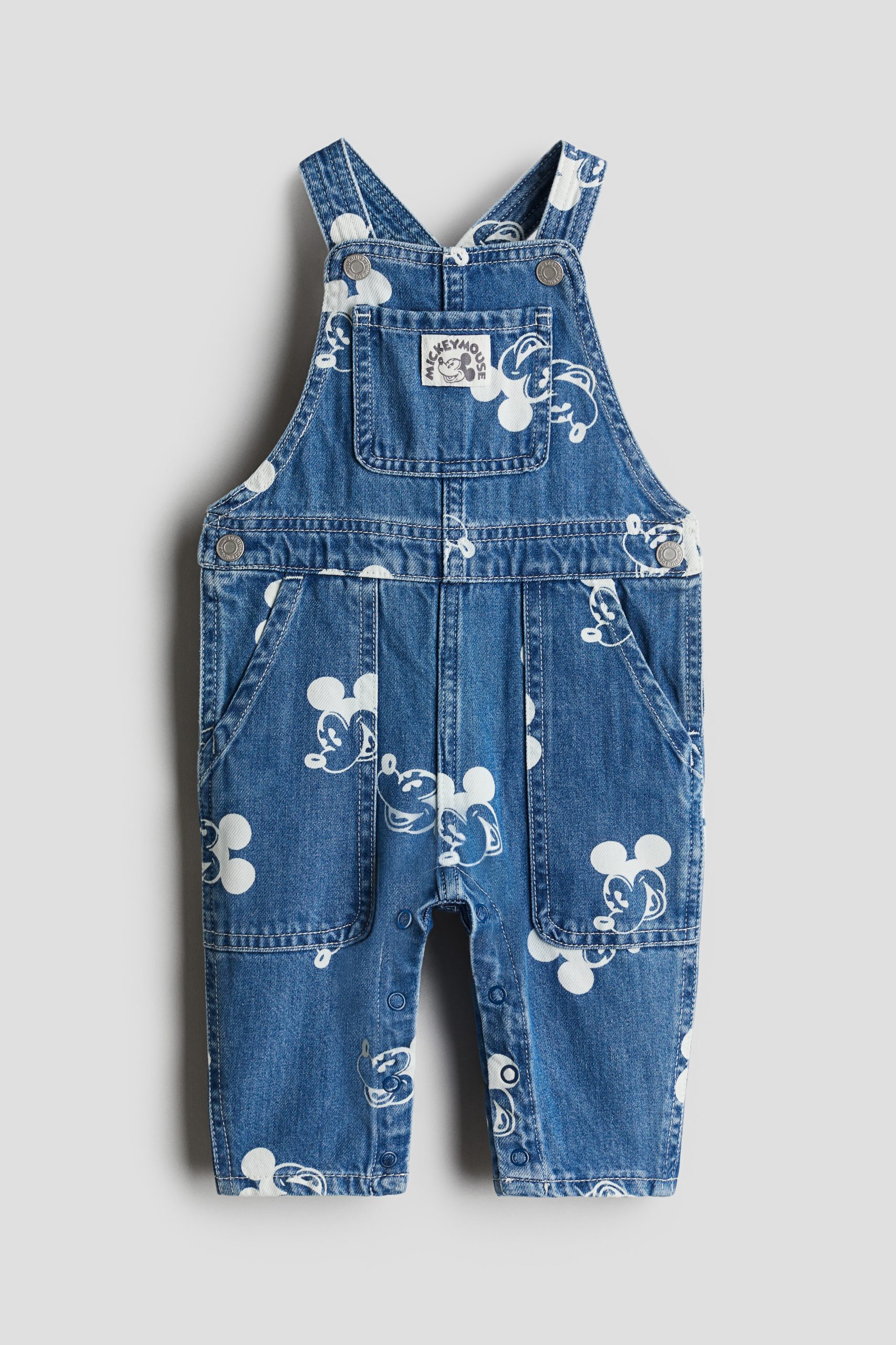 Een salopette van zacht katoenen denim met een all-over print. Het model heeft verstelbare bretels met drukknoopsluiting, een borstzak, een drukknoopsluiting aan de zijkanten, voor- en achterzakken en een blinde drukknoopsluiting overlangs op de pijpen (niet in maat 92-104).