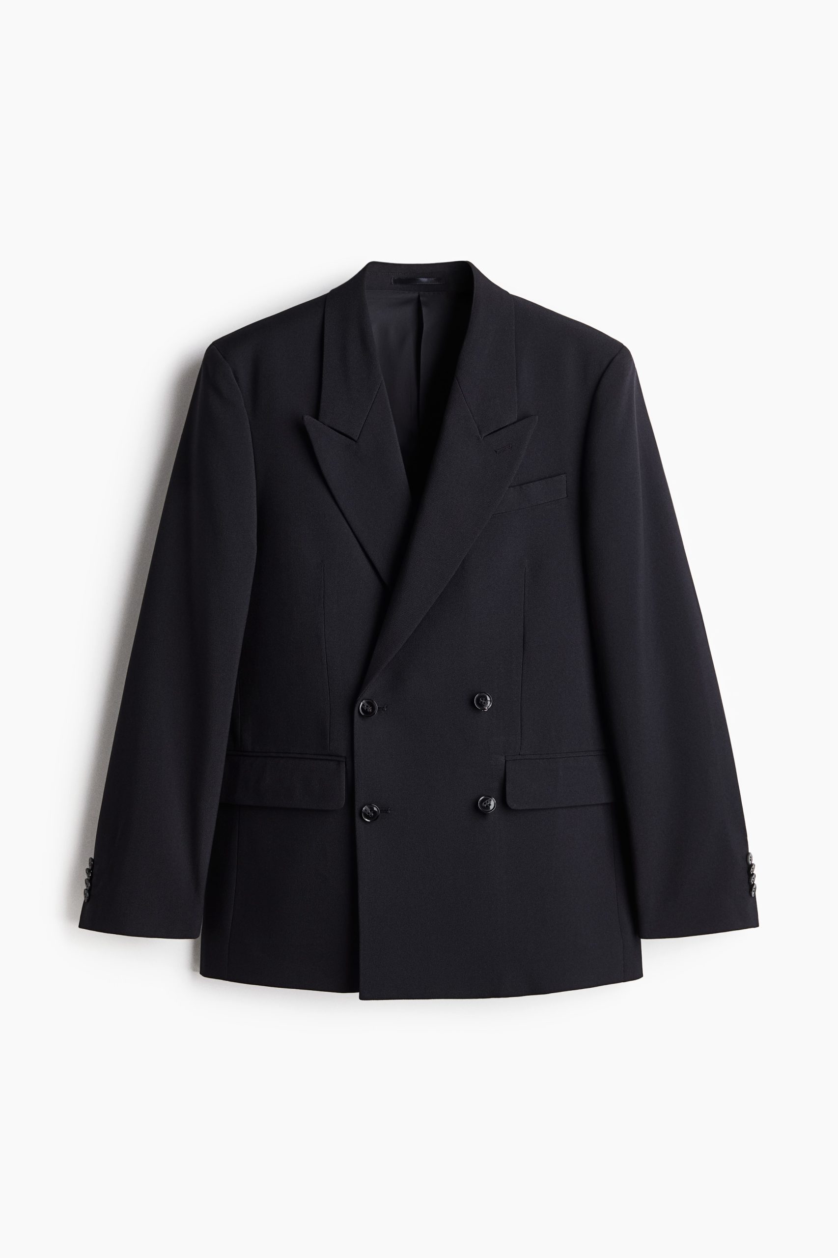 Een double-breasted colbert van een zachte, geweven kwaliteit met puntige revers met een decoratief knoopsgat, een borstzak, ingezette voorzakken met een klep en drie binnenzakken. Het model heeft decoratieve knopen onder aan de mouwen en een dubbele split achter. Relaxed Fit voor een casual maar niet oversized silhouet. Gevoerd.