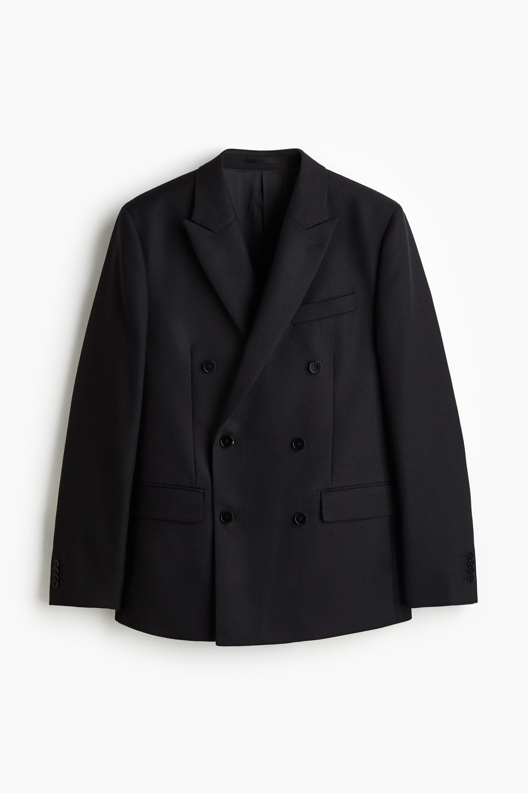 Een double-breasted colbert van zachte, geweven wolmix die afkomstig is van een Italiaanse spinnerij. Het model heeft puntige revers met een decoratief knoopsgat, knopen voor, een paspelborstzak, ingezette voorzakken met een klep, drie binnenzakken, decoratieve knopen onder aan de mouwen en een dubbele split achter. Regular Fit voor een comfortabele pasvorm en een klassiek silhouet. Gevoerd.